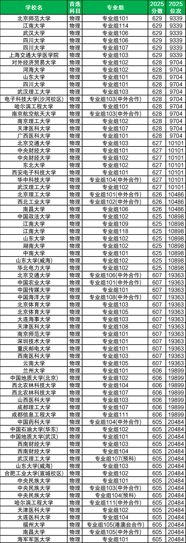 不同大学2025年在四川招生录取位次不同,下面以物理类为例,展示四川高考位次对应大学名单: