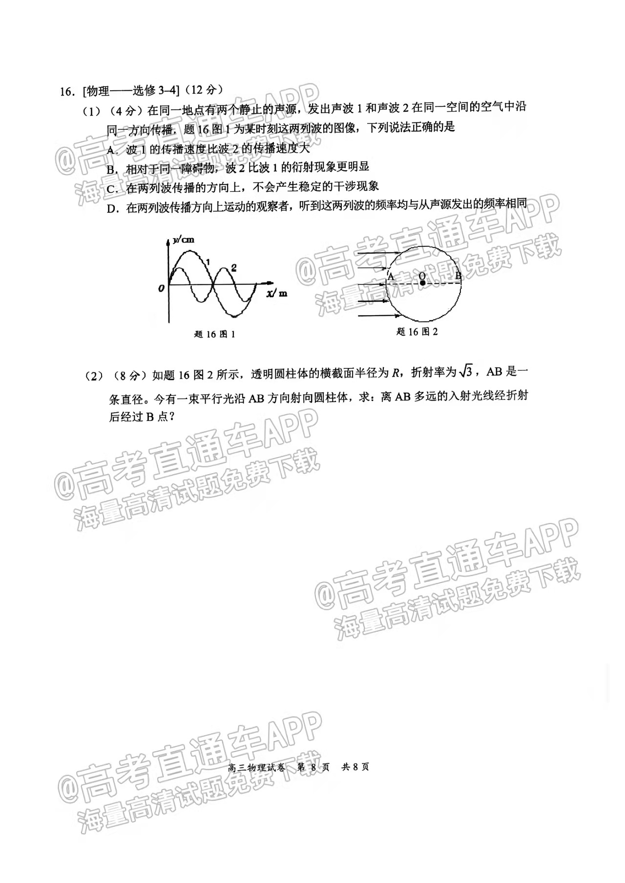 2022年的重庆高三二诊共2套试卷,本文将带来2022重庆二诊(主城区)的物理试卷以及答案!