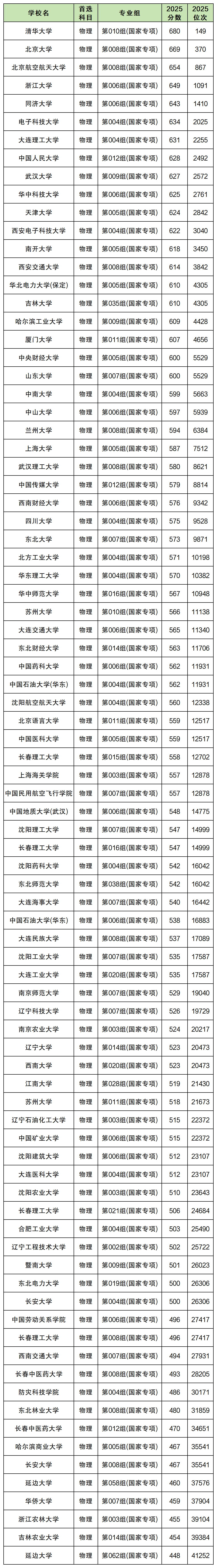 以下是2025年各大学国家专项计划在吉林物理类的录取分数线一览表(需滑动查阅):