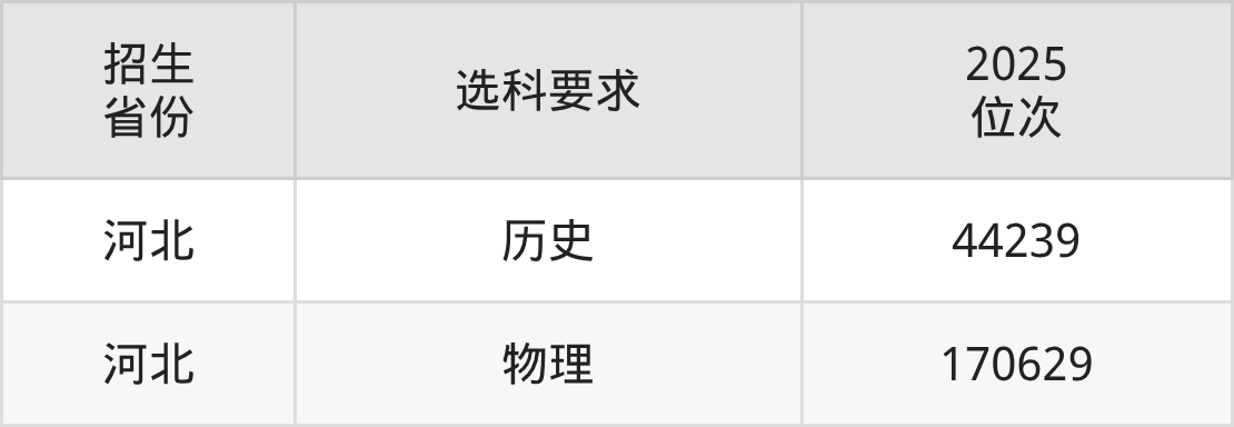 河北农业大学现代科技学院2025年的位次差异较大,最高位次是44239位(河北历史类)、最低位次是170629位(河北物理类)。具体位次请看下图: