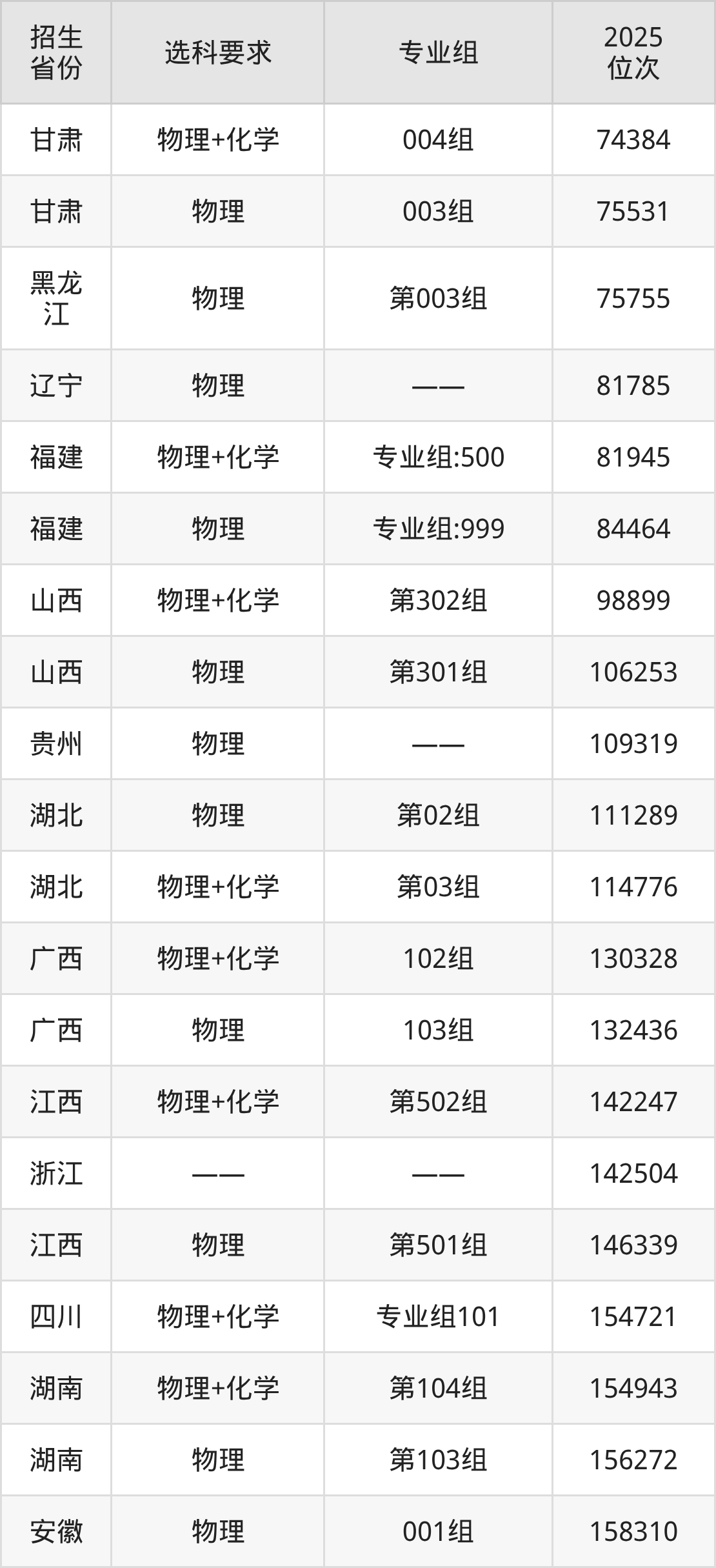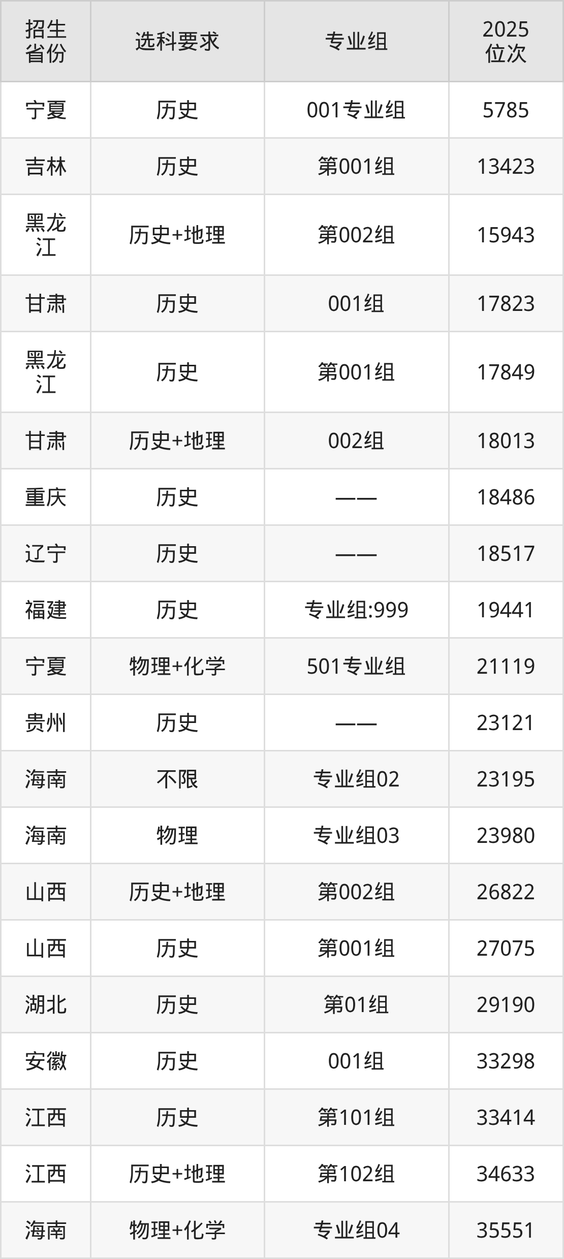 江西师范大学科学技术学院2025年在全国各省的位次差异较大,最高位次是5785位(宁夏历史类)、最低位次是320847位(山东)。各省具体位次请看下图: