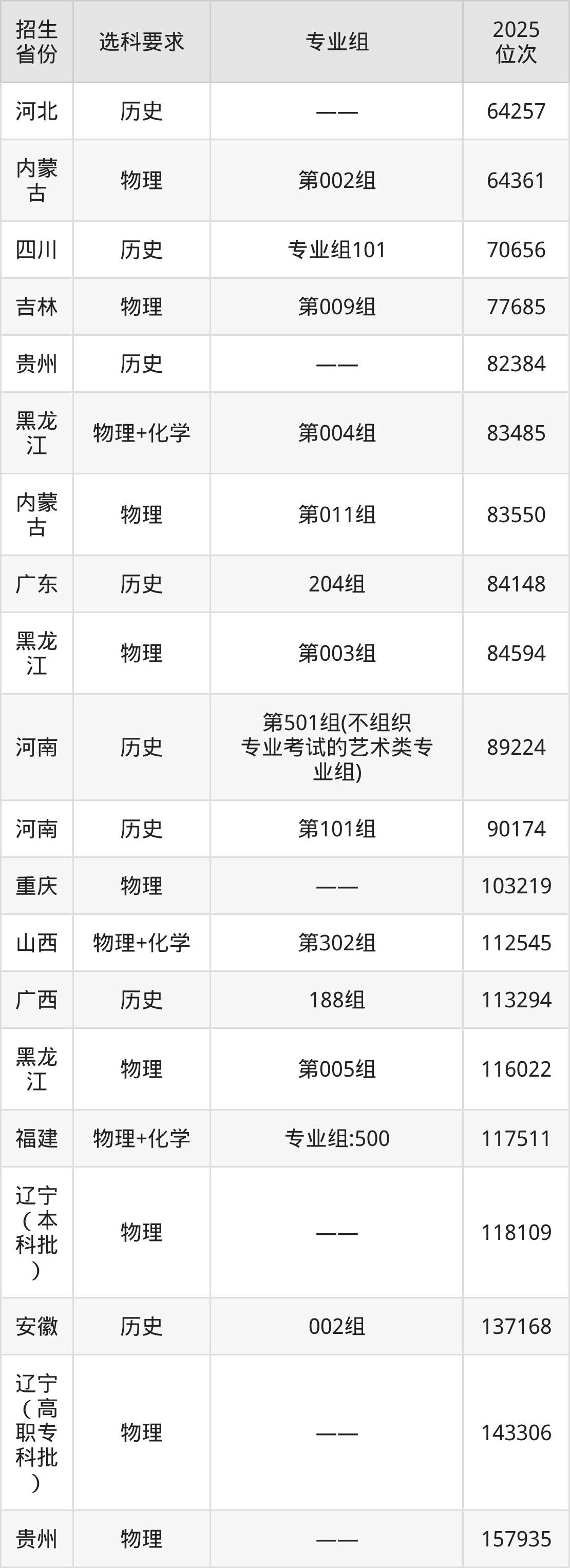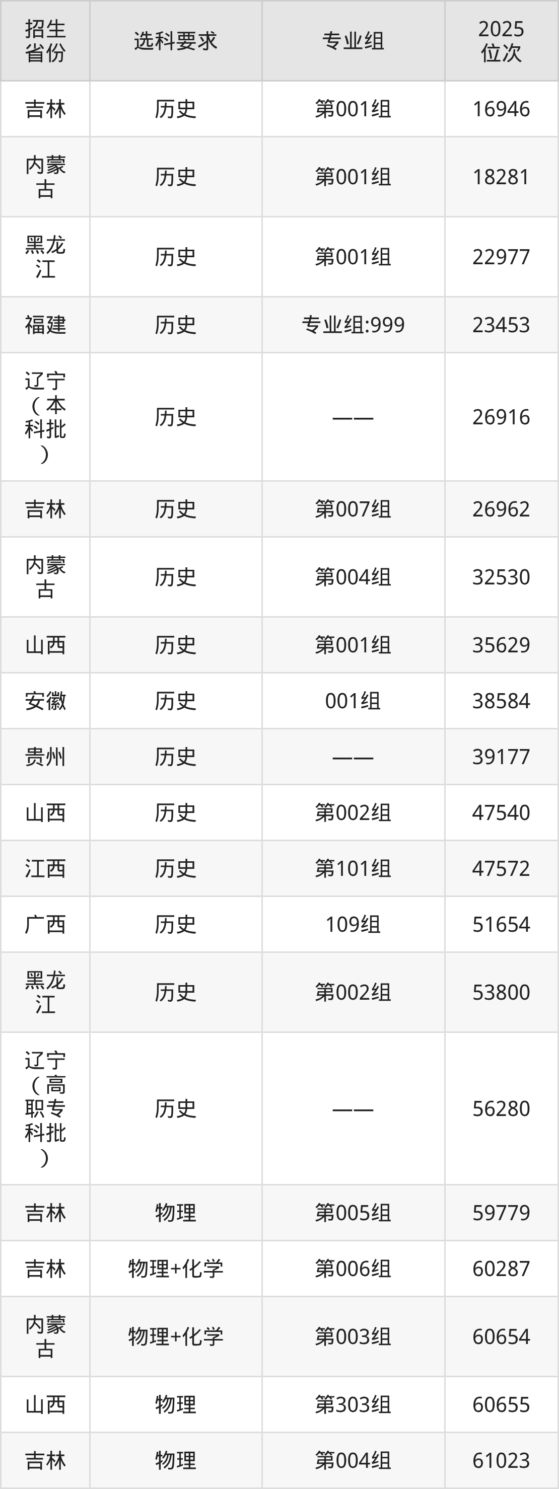 辽宁传媒学院2025年在全国各省的位次差异较大,最高位次是16946位(吉林历史类)、最低位次是677685位(山东)。各省具体位次请看下图: