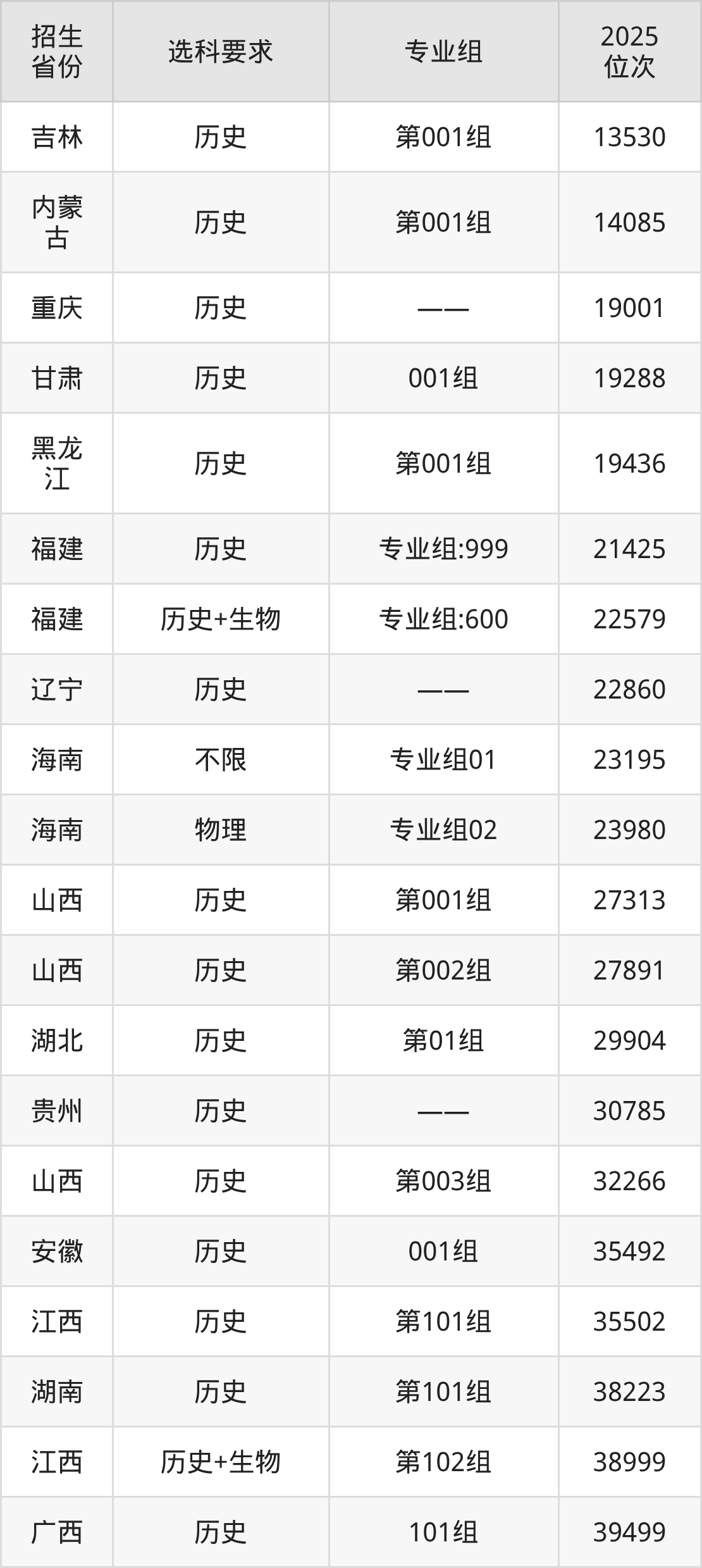 江西农业大学南昌商学院2025年在全国各省的位次差异较大,最高位次是13530位(吉林历史类)、最低位次是264203位(河南物理类)。各省具体位次请看下图: