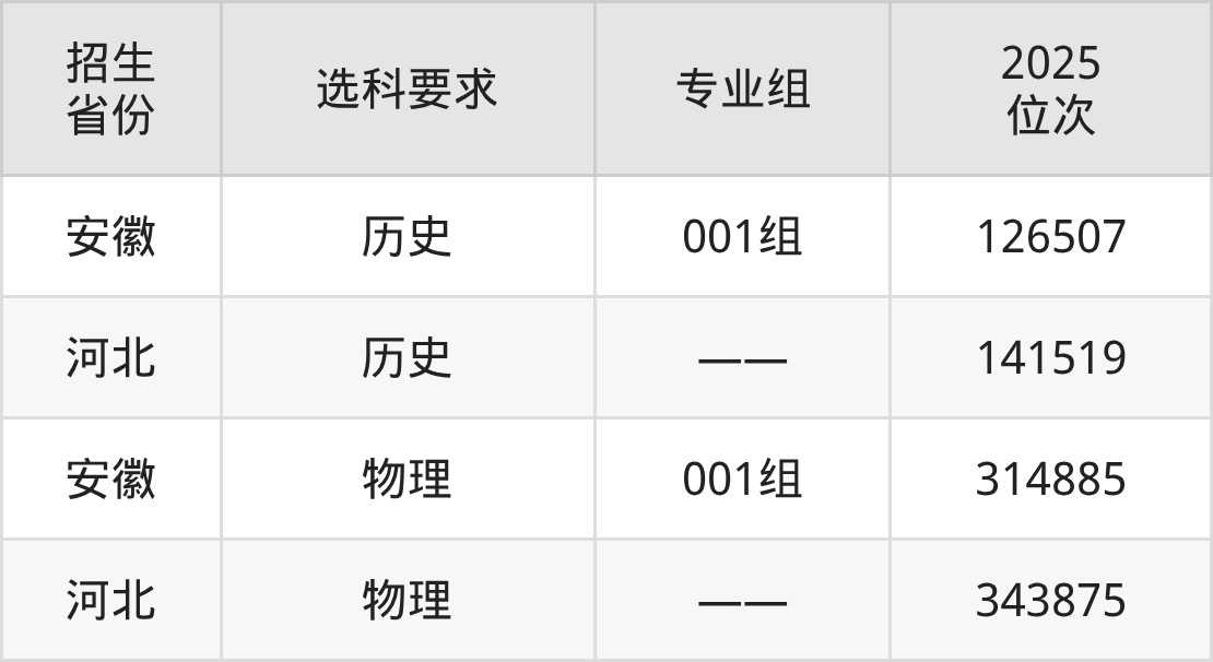民办合肥经济技术职业学院2025年在全国各省的位次差异较大,最高位次是126507位(安徽历史类)、最低位次是343875位(河北物理类)。各省具体位次请看下图: