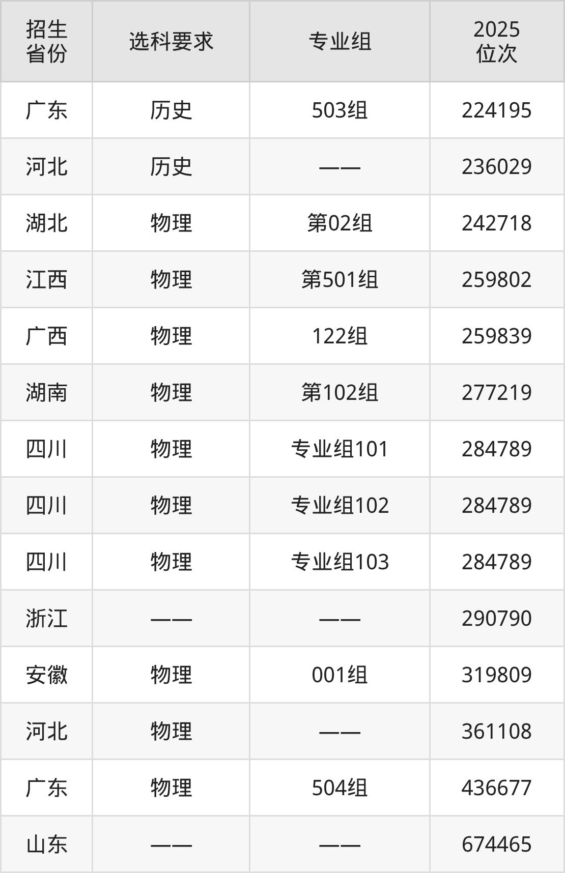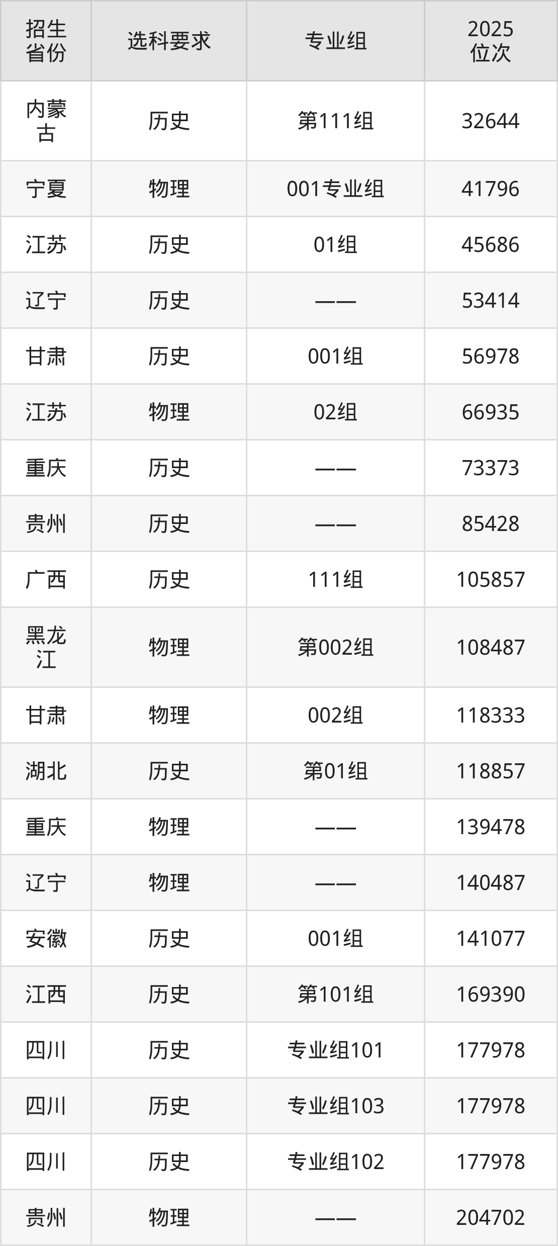 巴中职业技术学院2025年在全国各省的位次差异较大,最高位次是32644位(内蒙古历史类)、最低位次是674465位(山东)。各省具体位次请看下图: