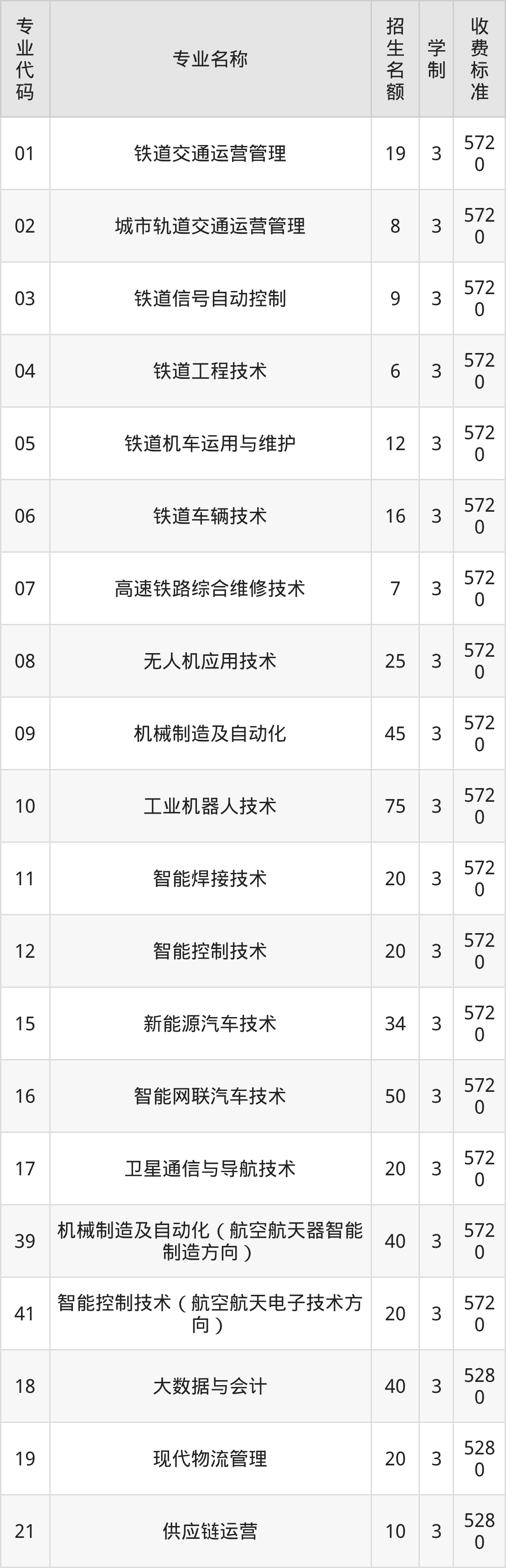 | 04 | 铁道工程技术 | 6 | 3 | 5720 |