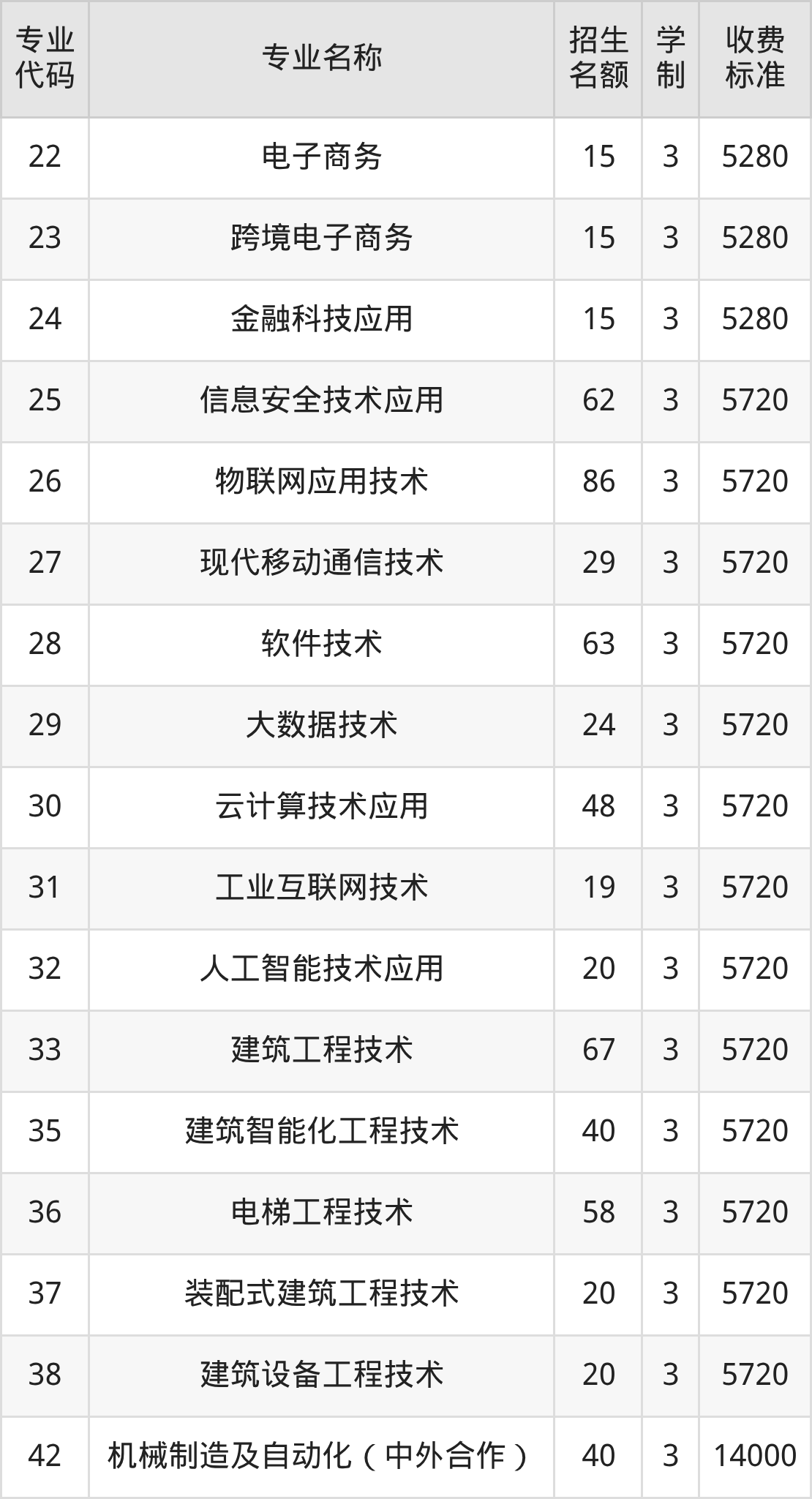 | 35 | 建筑智能化工程技术 | 27 | 3 | 5720 |