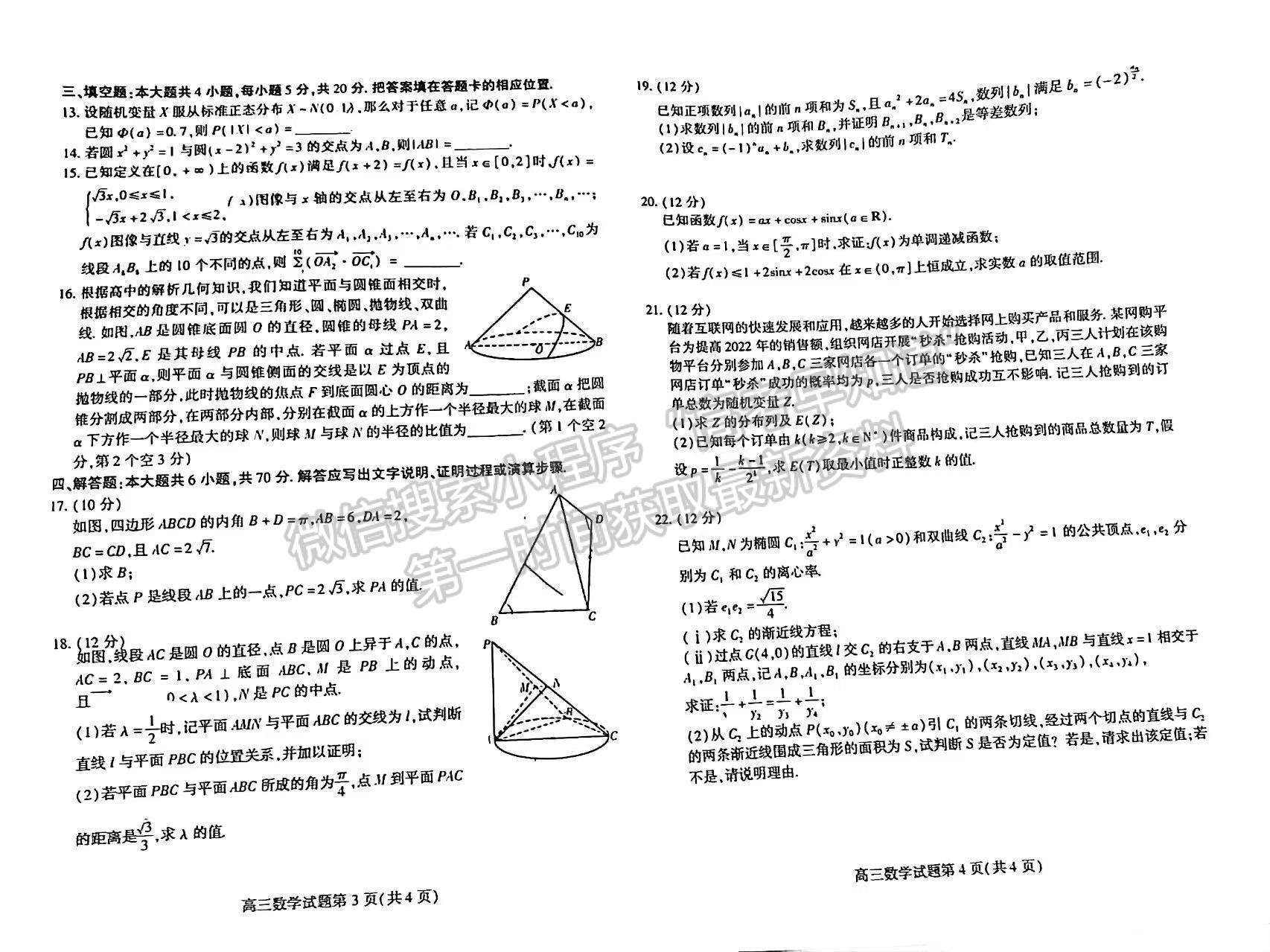 1、2022年潍坊二模高三数学答案