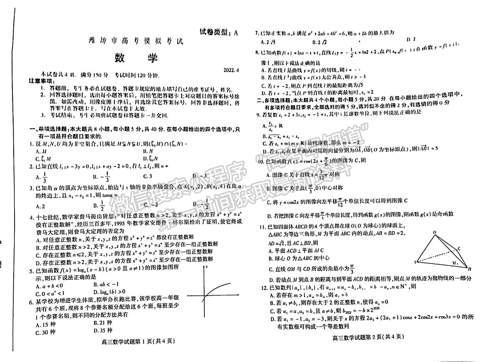 2、2022年潍坊二模高三数学试卷