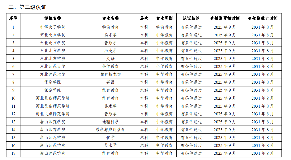 通过二级师范类认证的大学和专业数量较多,共有576所大学专业认证通过。部分名单如下: