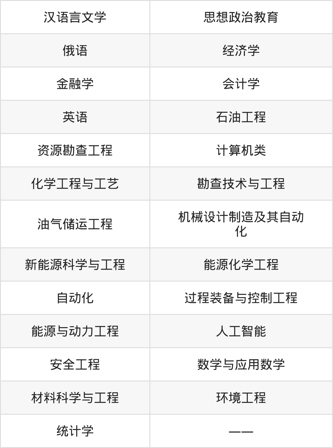 根据2025年新疆高考招生计划可知,中国石油大学(北京)克拉玛依校区招生专业包含汉语言文学、思想政治教育、俄语等,完整版名单如下。