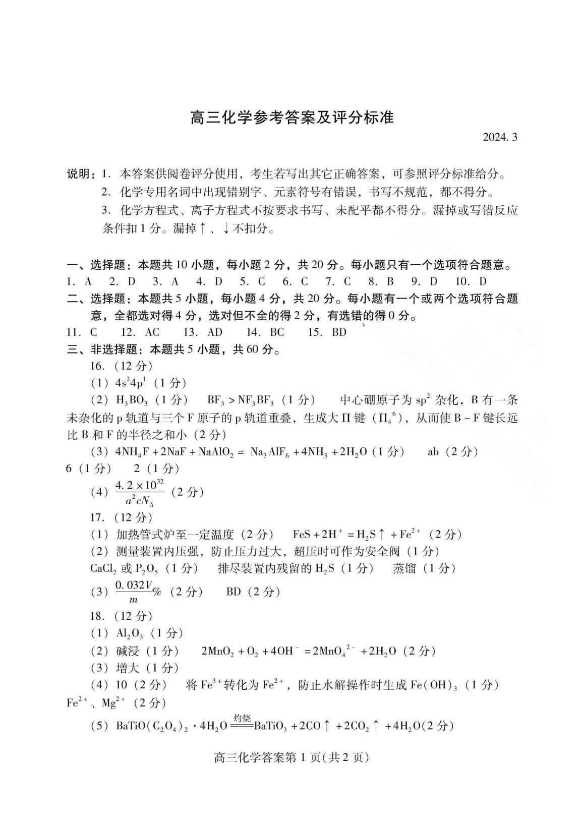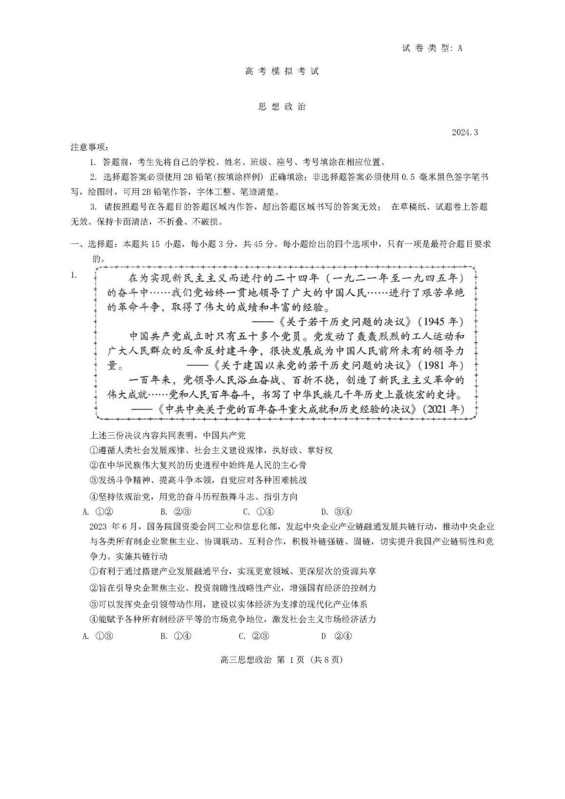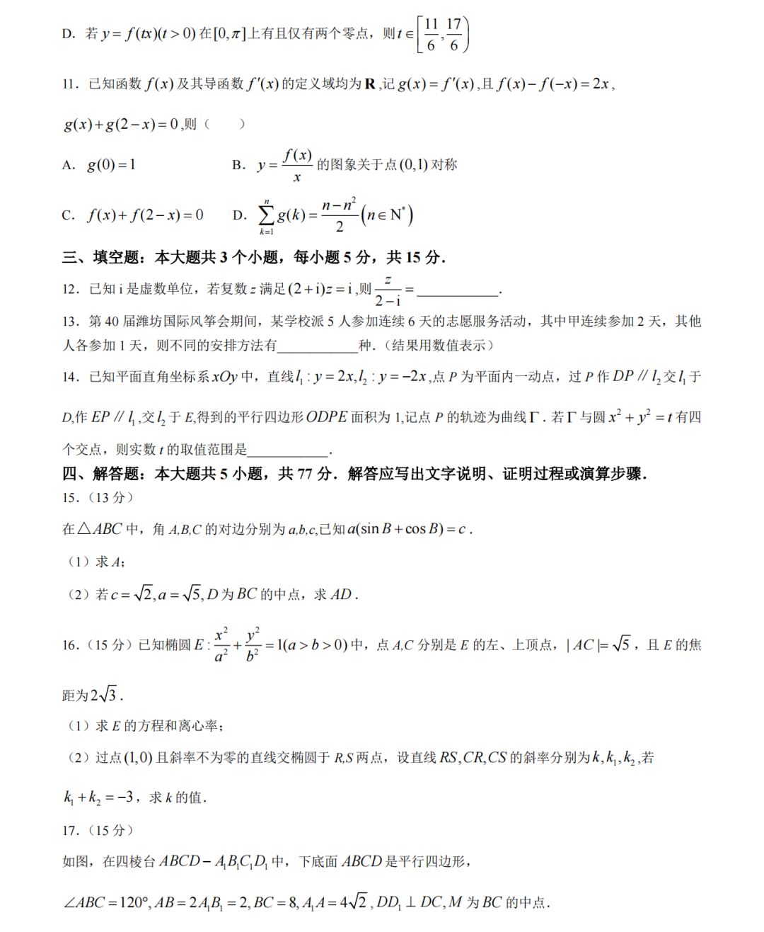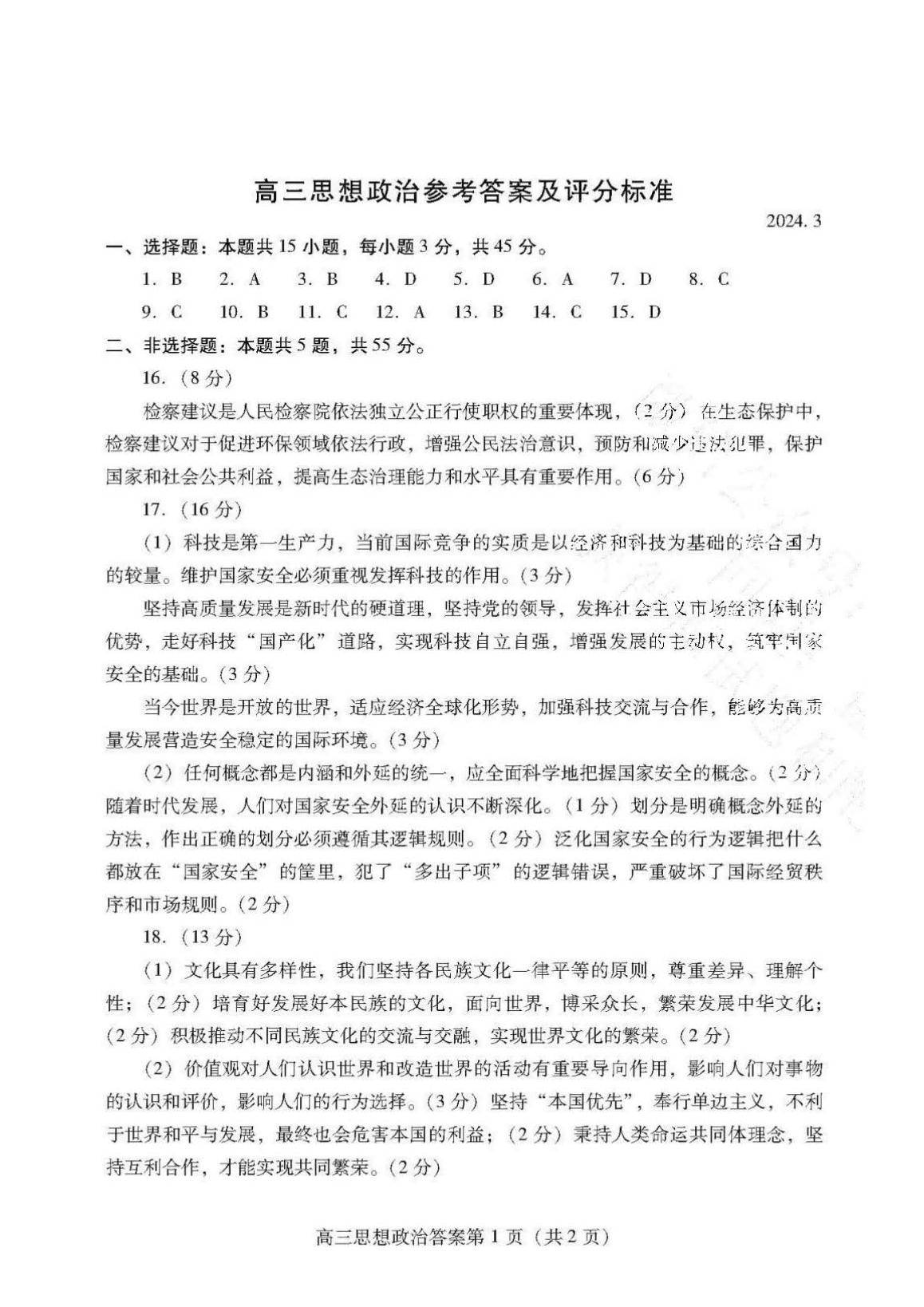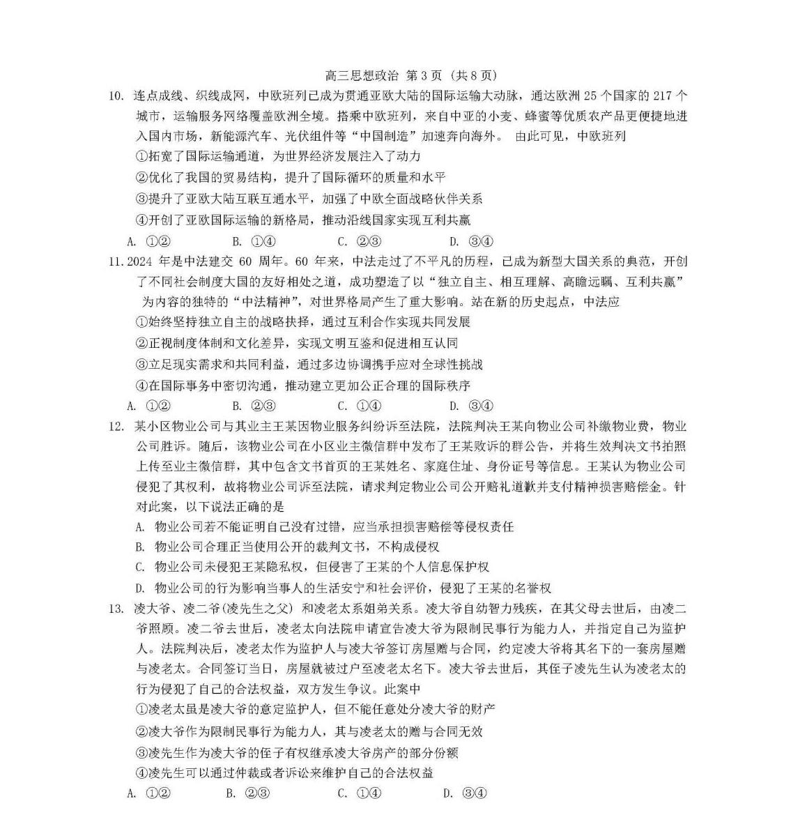 2024潍坊一模各科试卷及答案解析
