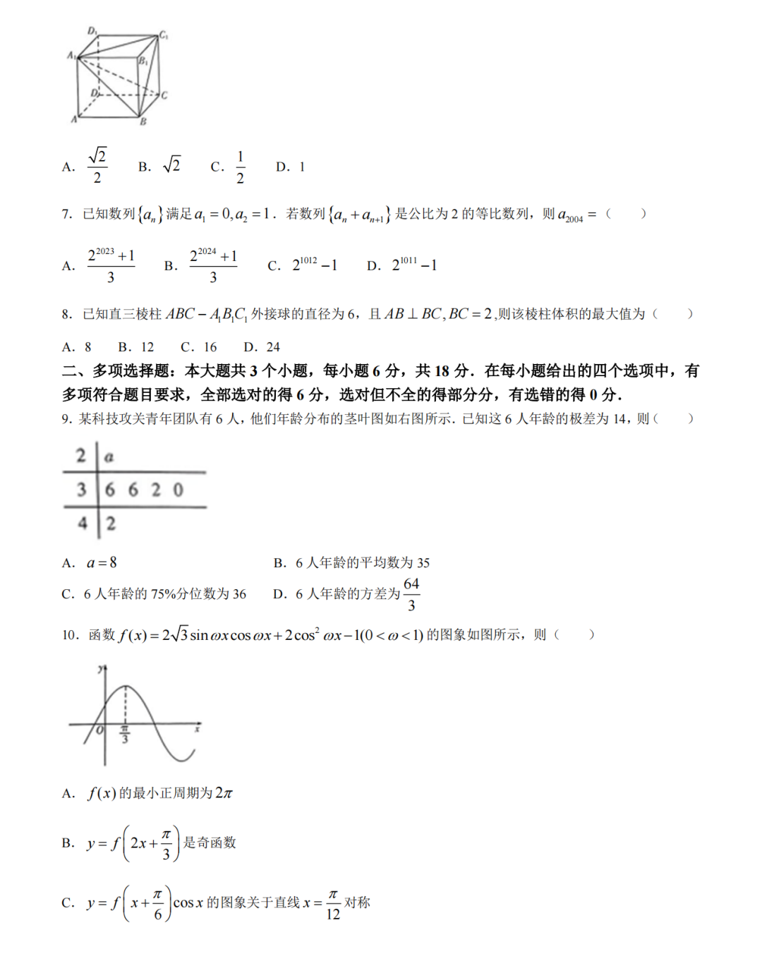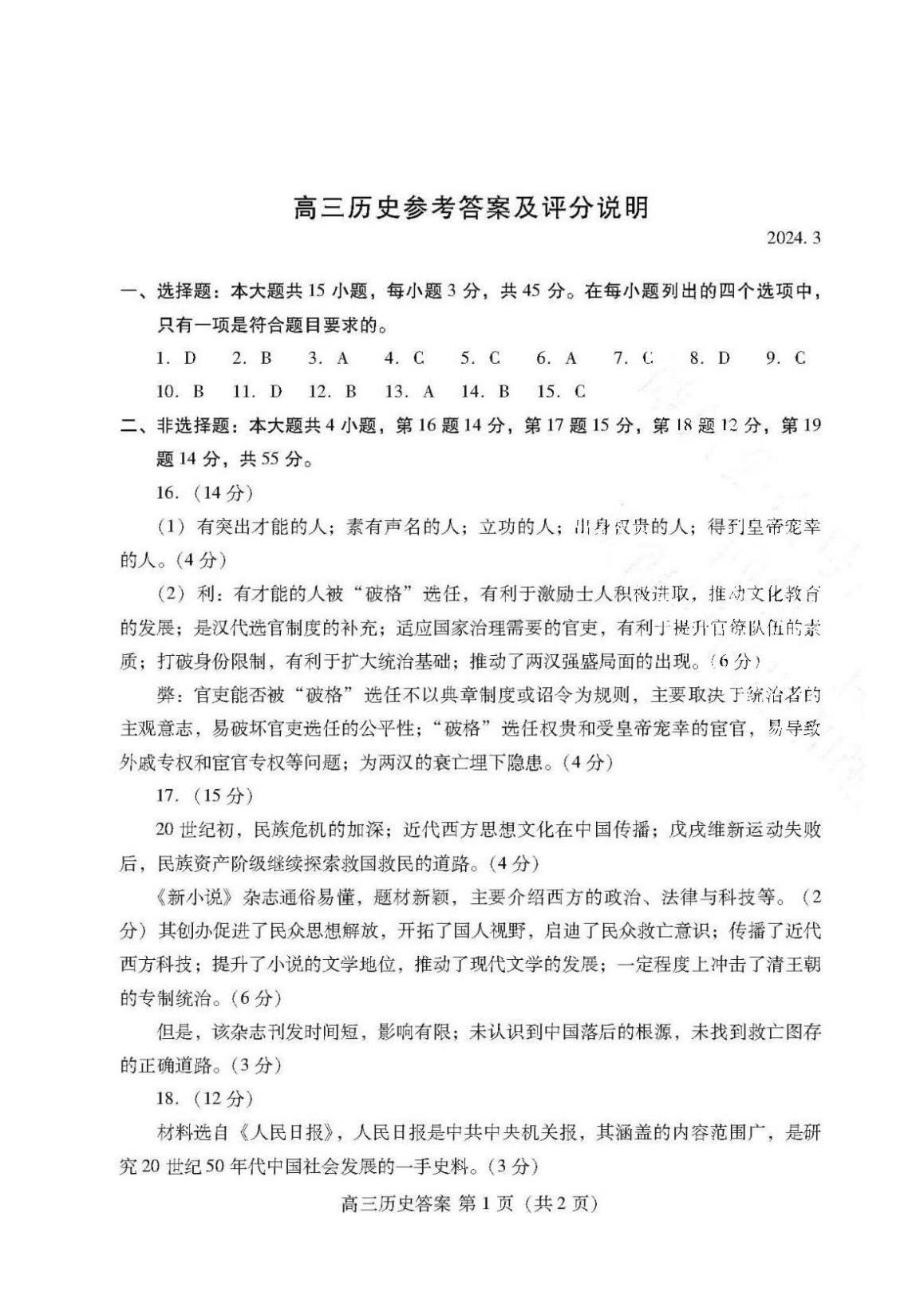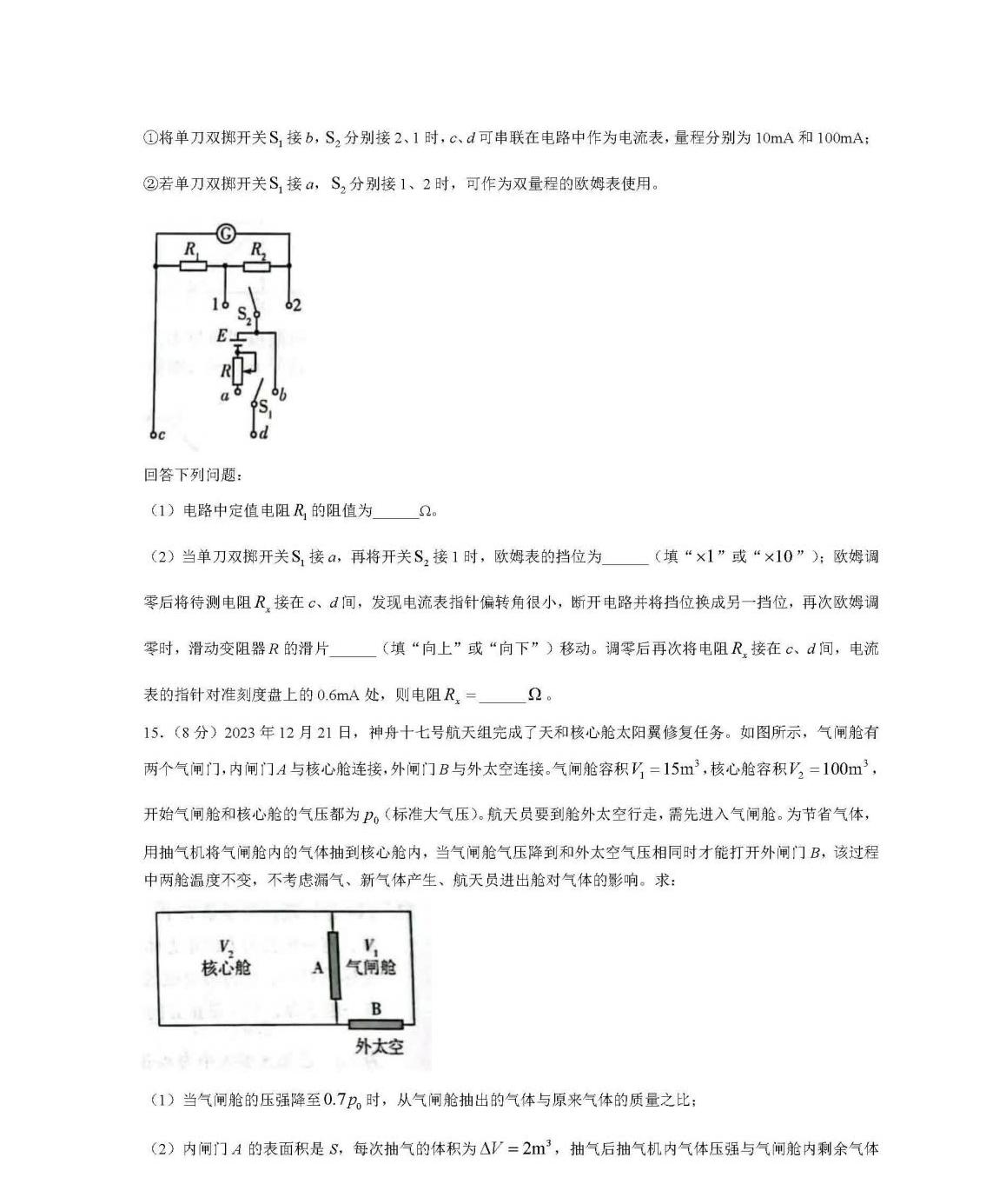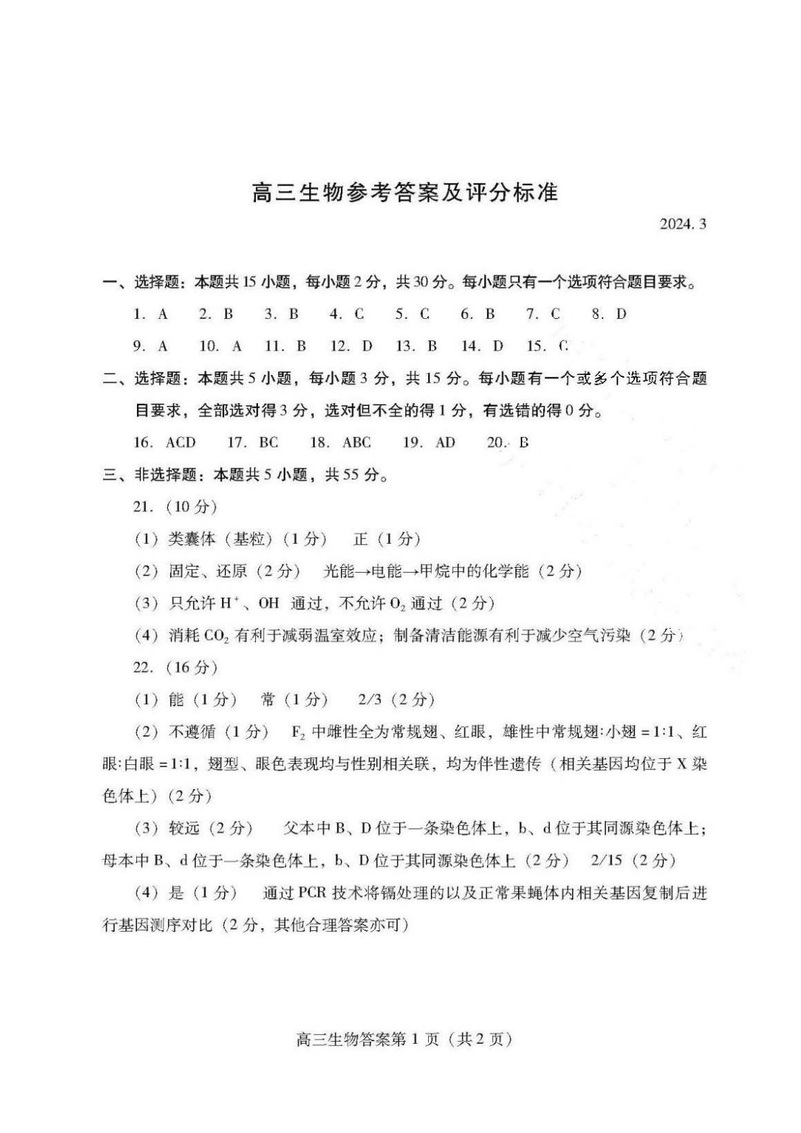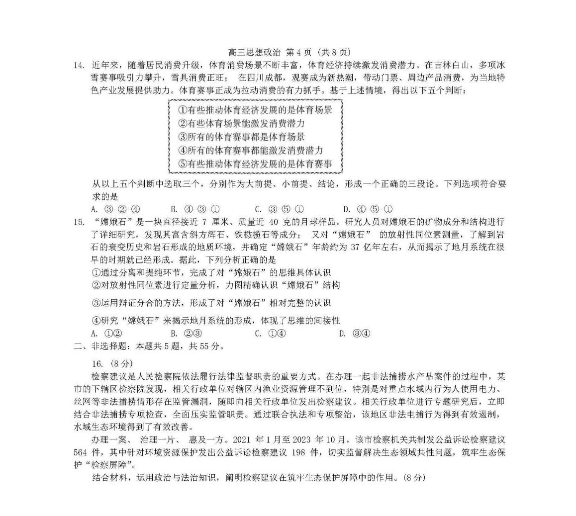 2024潍坊一模各科试卷及答案解析