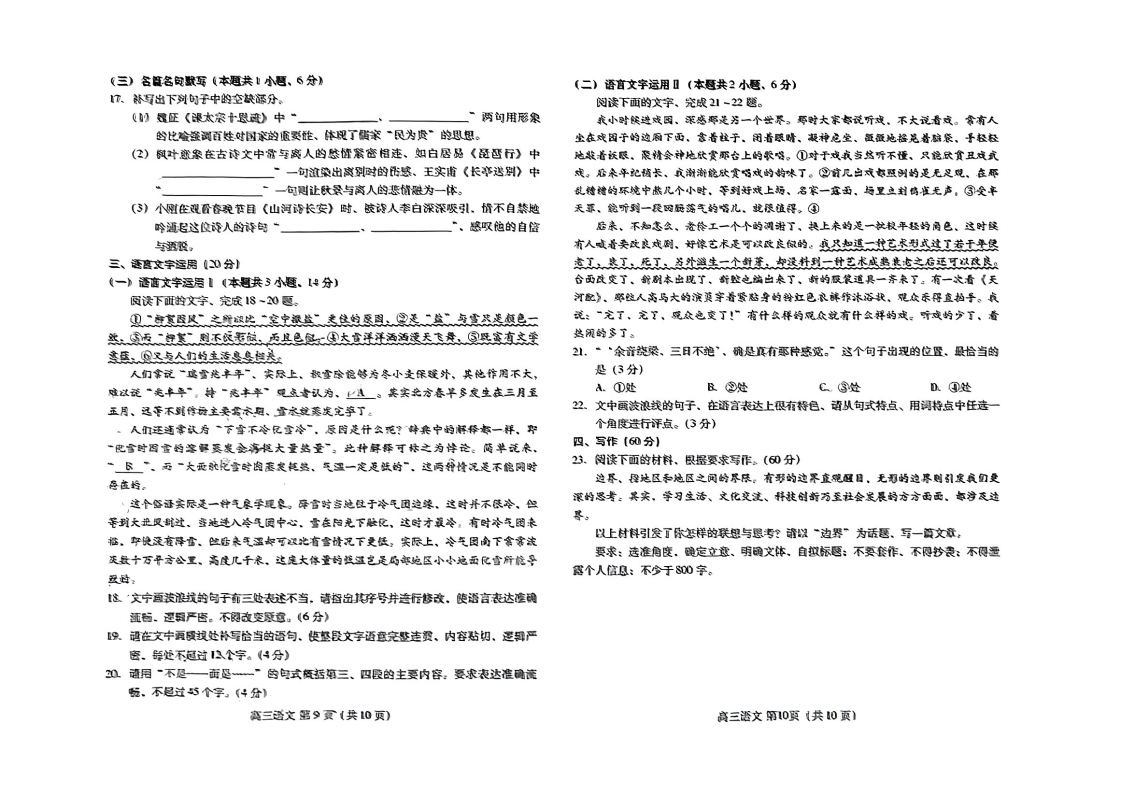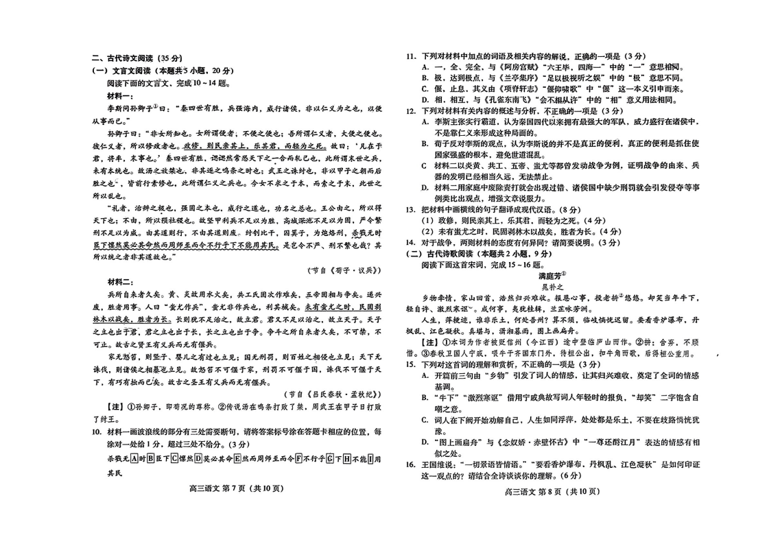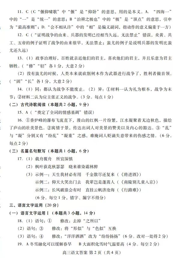 1、语文试卷及答案解析