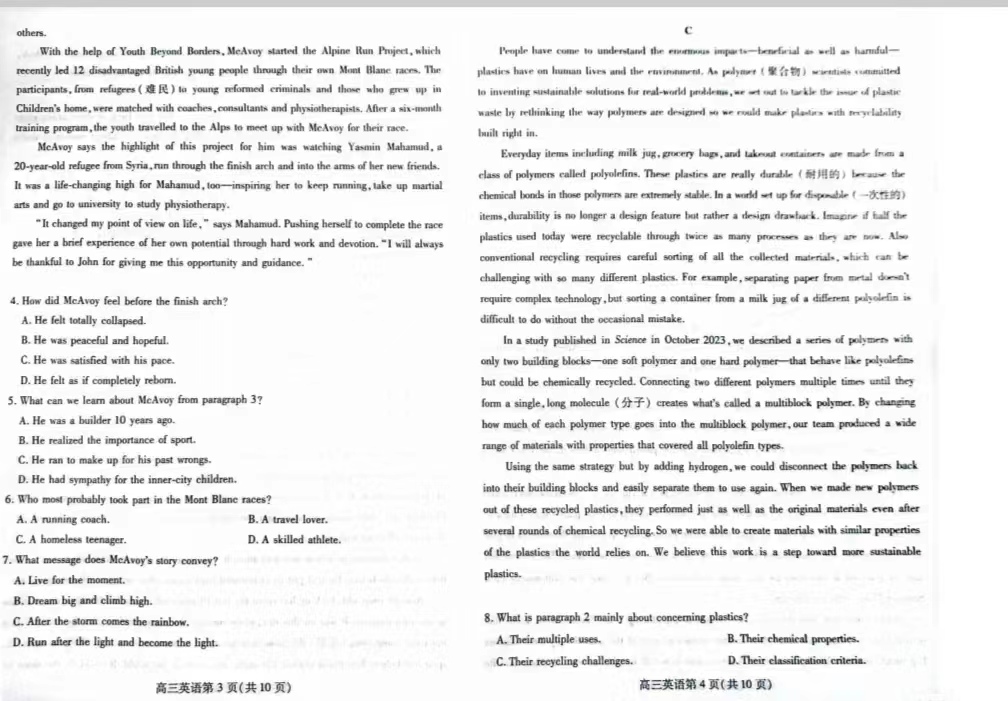 3、英语试卷及答案解析