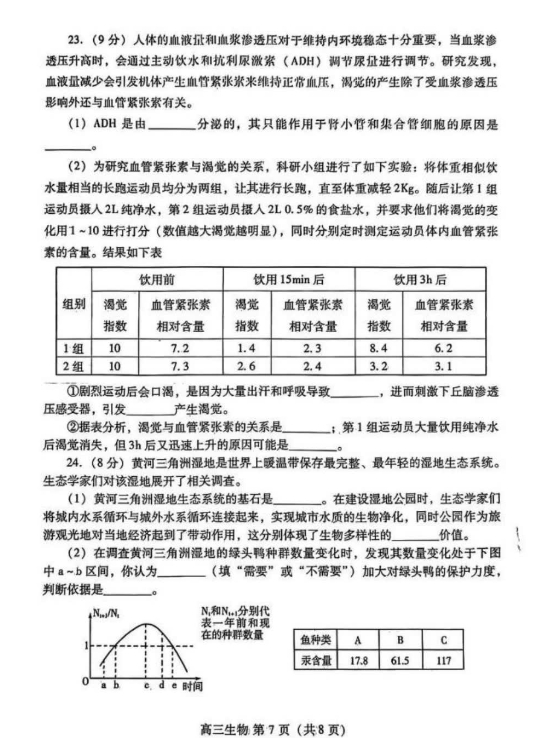 7、生物试卷及答案解析