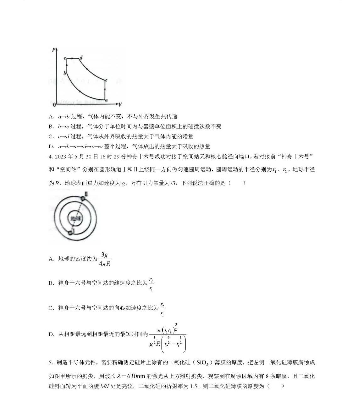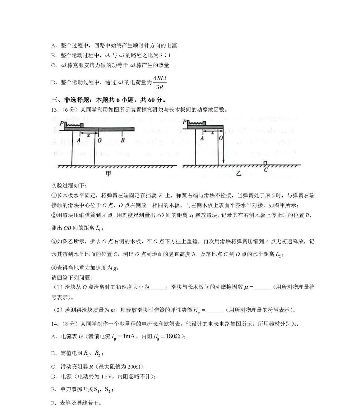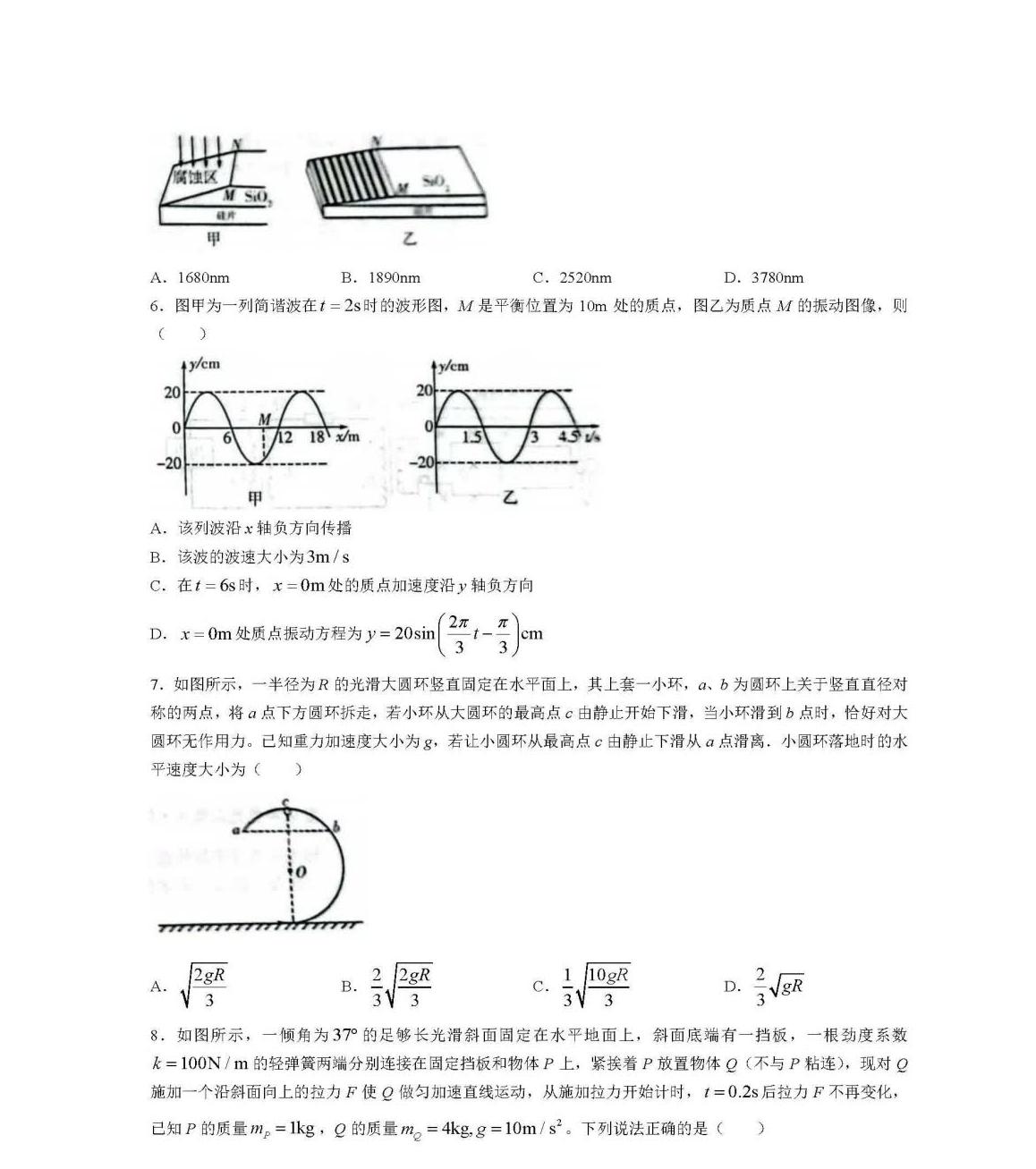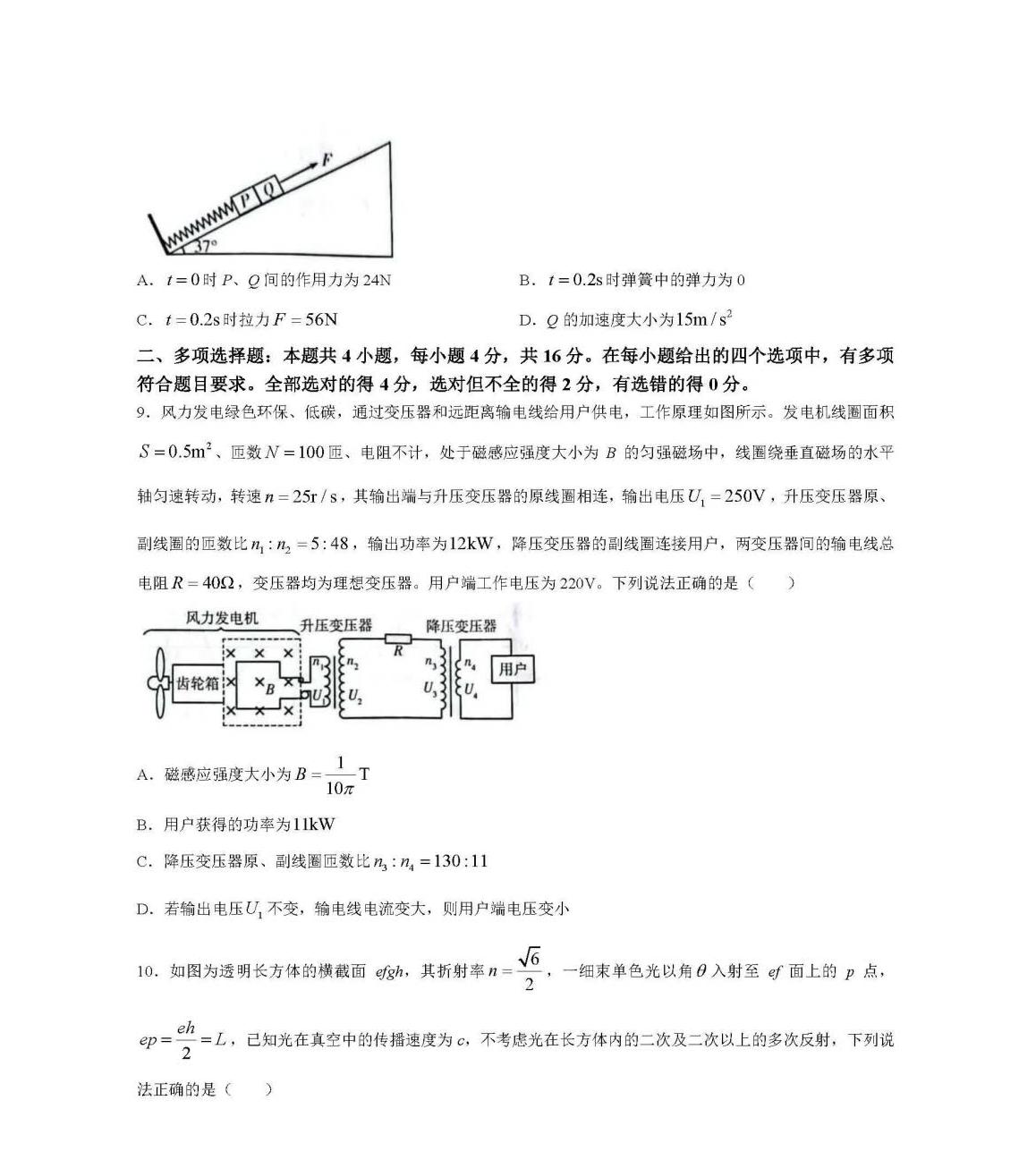 4、物理试卷及答案解析