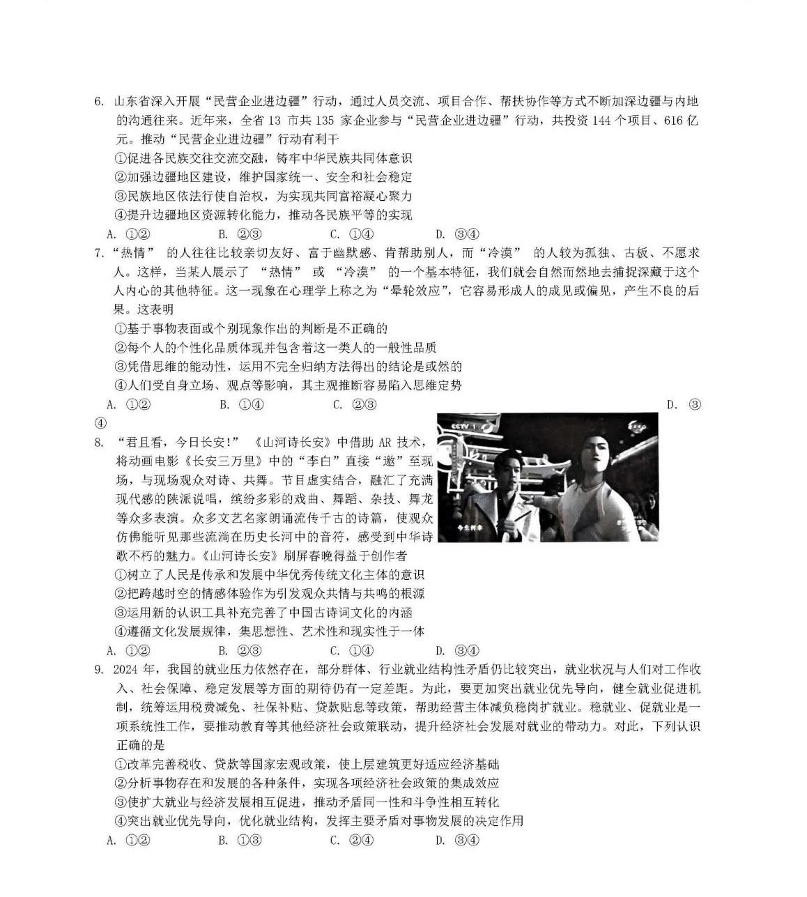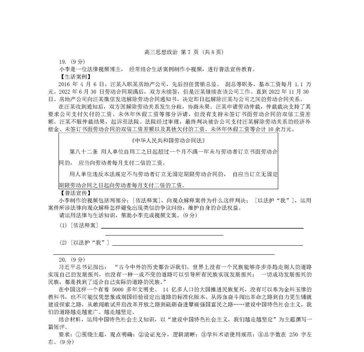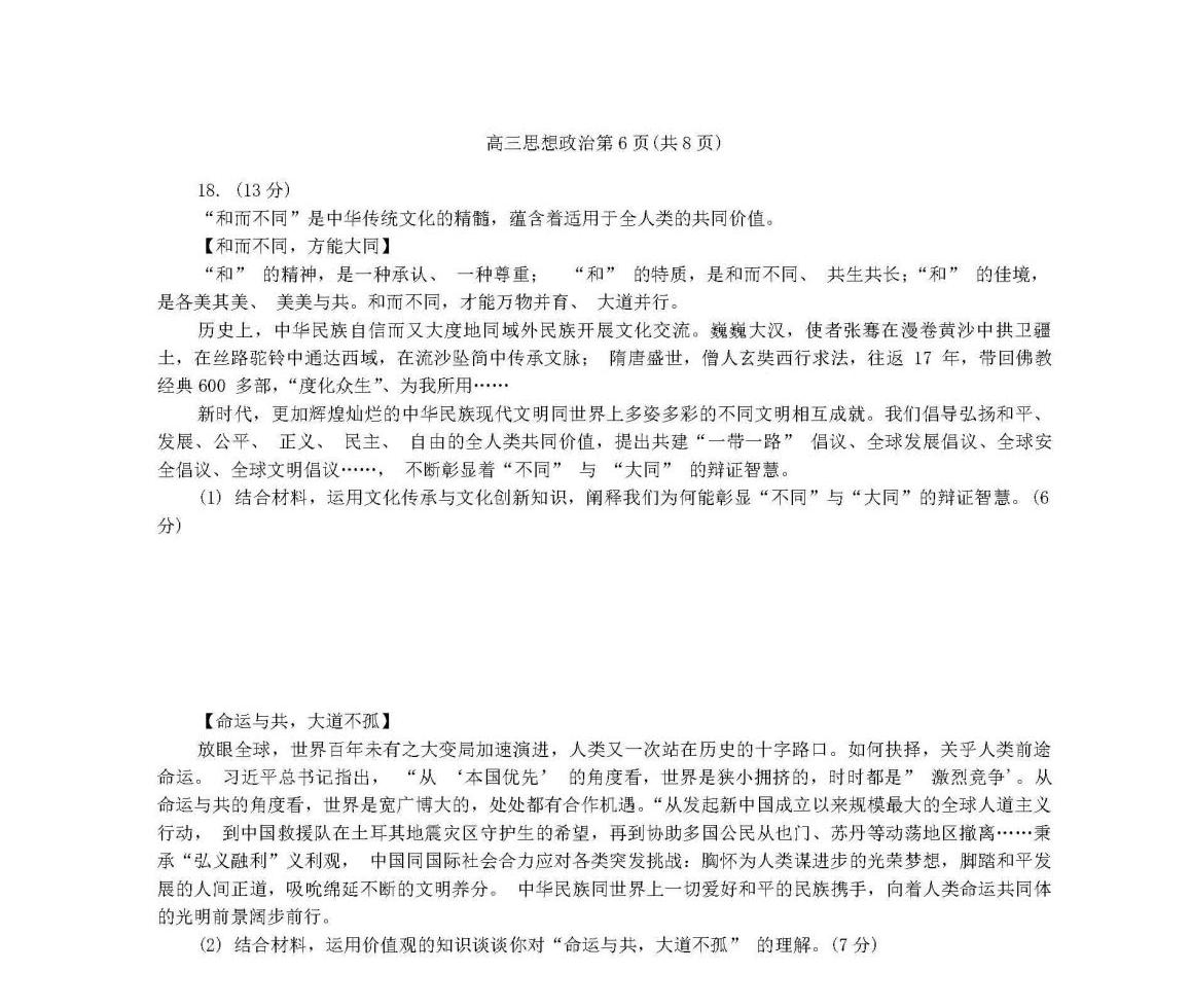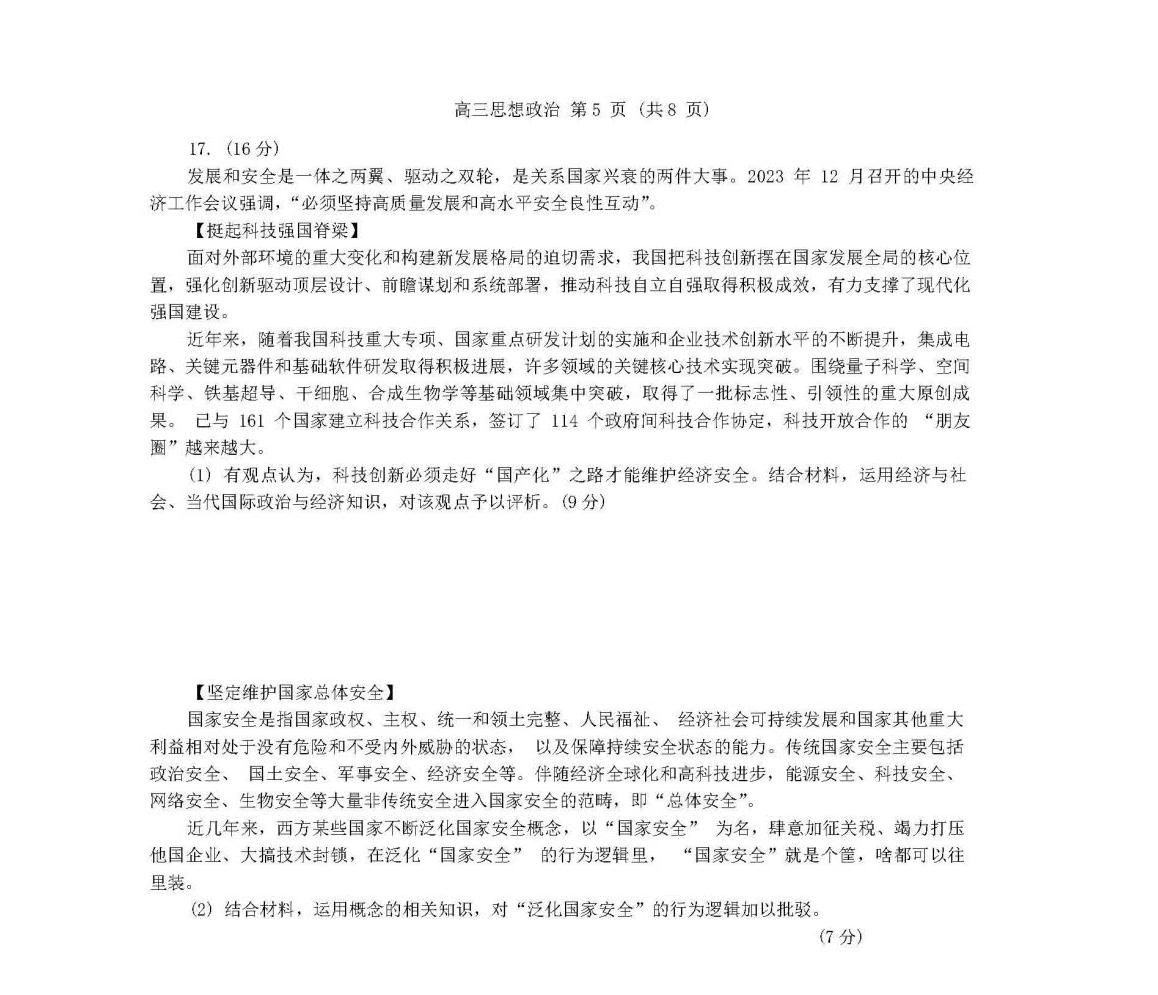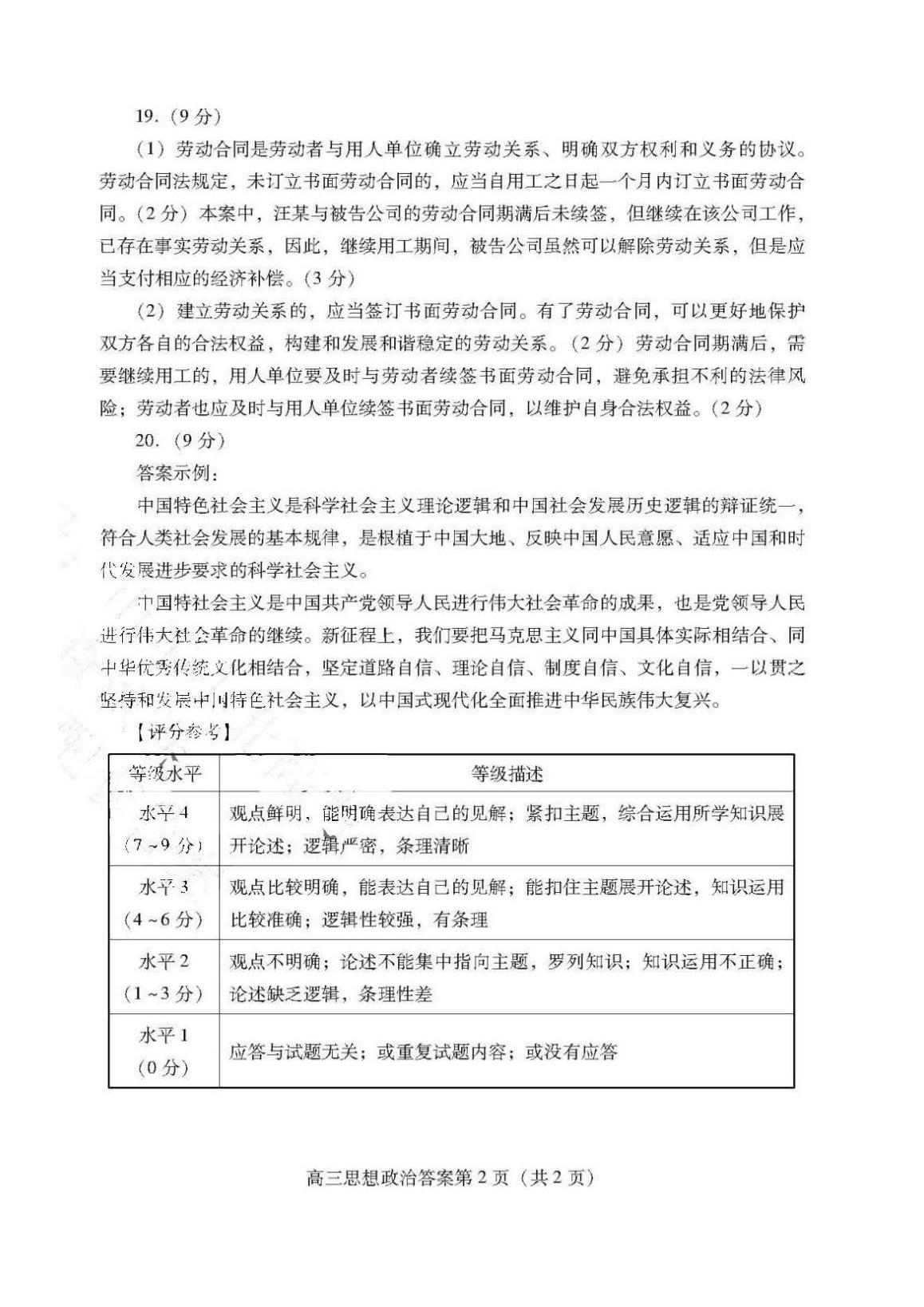 9、政治试卷及答案解析