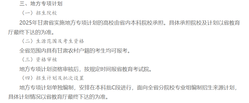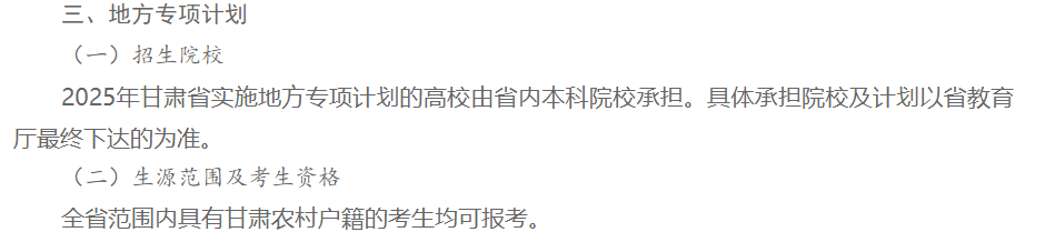 (甘肃省2025年重点高校招生专项计划实施办法)