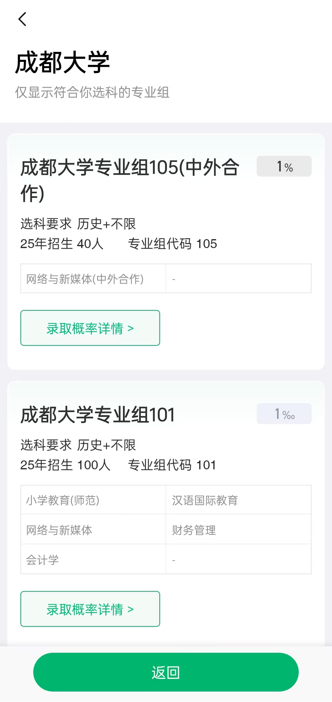 该功能为考生推荐分数段内能上的所有大学,可以根据分数/位次的波动,预设一个分数段,APP会为同学们匹配出该分段能上的全部大学名单。