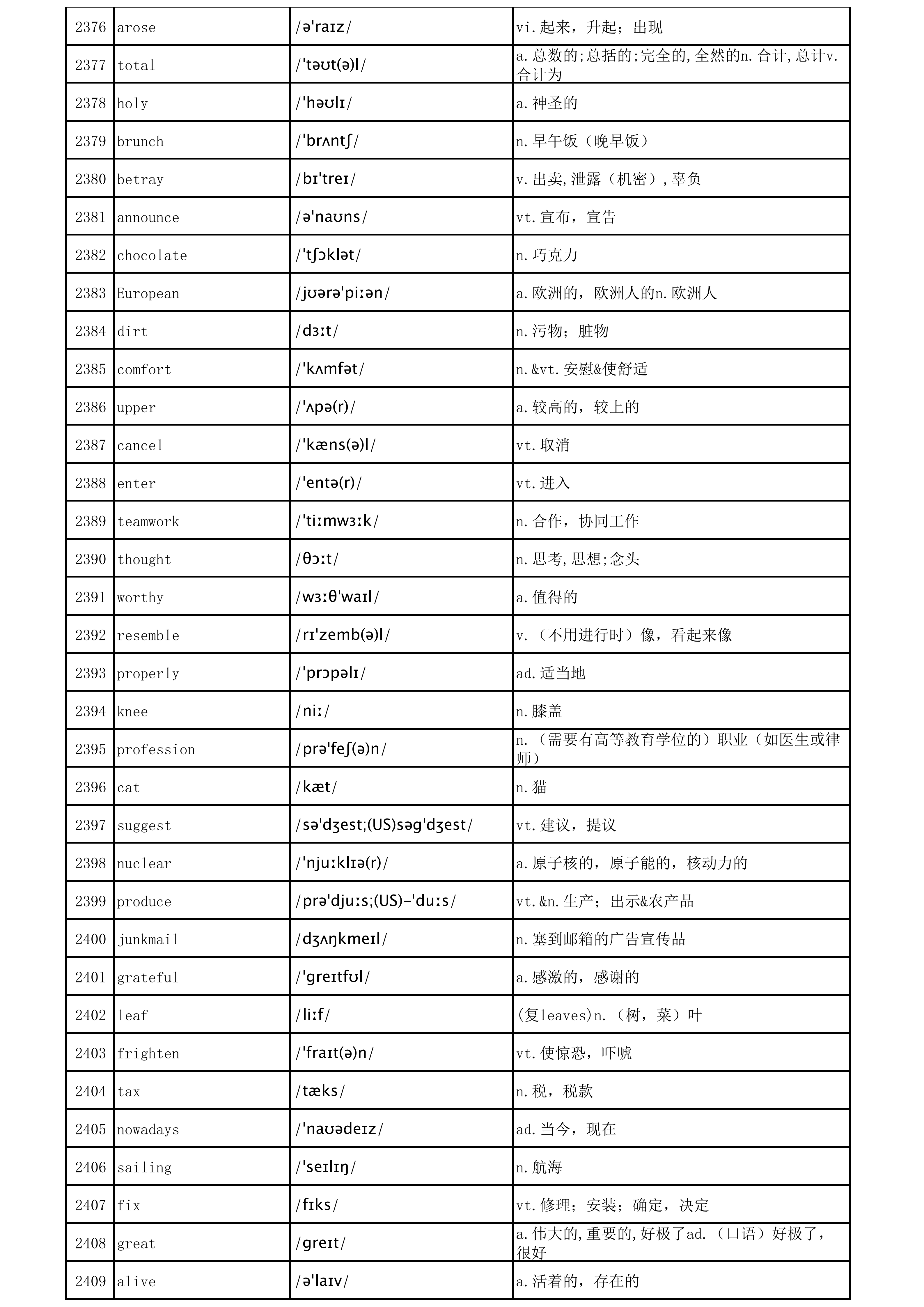 英语词汇,无疑是高考英语成败的决定性因素。每一位高中生,对词汇的掌握和记忆都不该有丝毫懈怠。小编为同学们整理了高考英语必备3500个单词的乱序版,供同学们查阅。