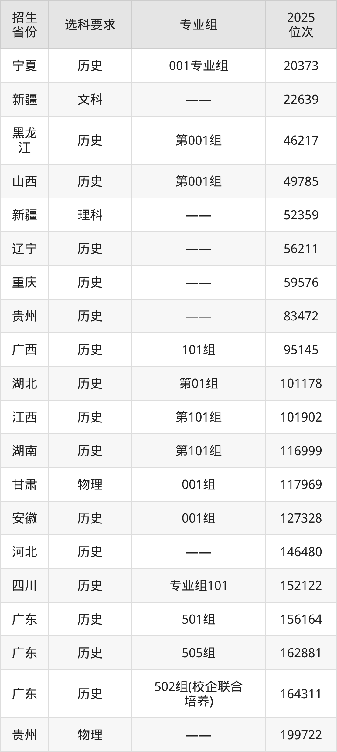 湛江幼儿师范专科学校2025年在全国各省的位次差异较大,最高位次是20373位(宁夏历史类)、最低位次是363852位(广东物理类)。各省具体位次请看下图: