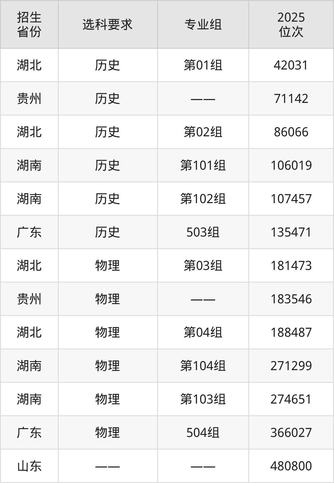邵阳职业技术学院2025年在全国各省的位次差异较大,最高位次是42031位(湖北历史类)、最低位次是480800位(山东)。各省具体位次请看下图: