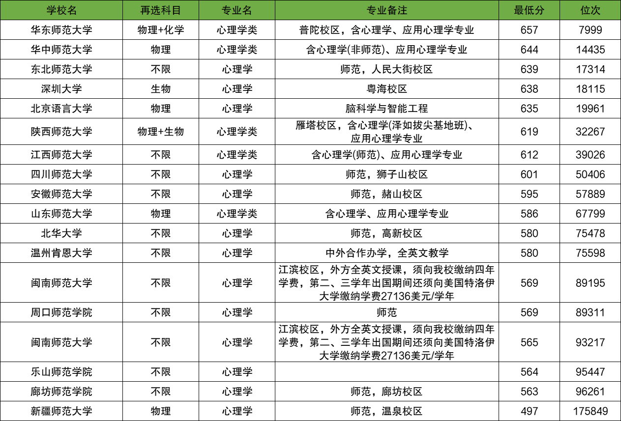 注:以上仅为浙江心理学专业大学最低录取分数线,不包含应用心理学专业。