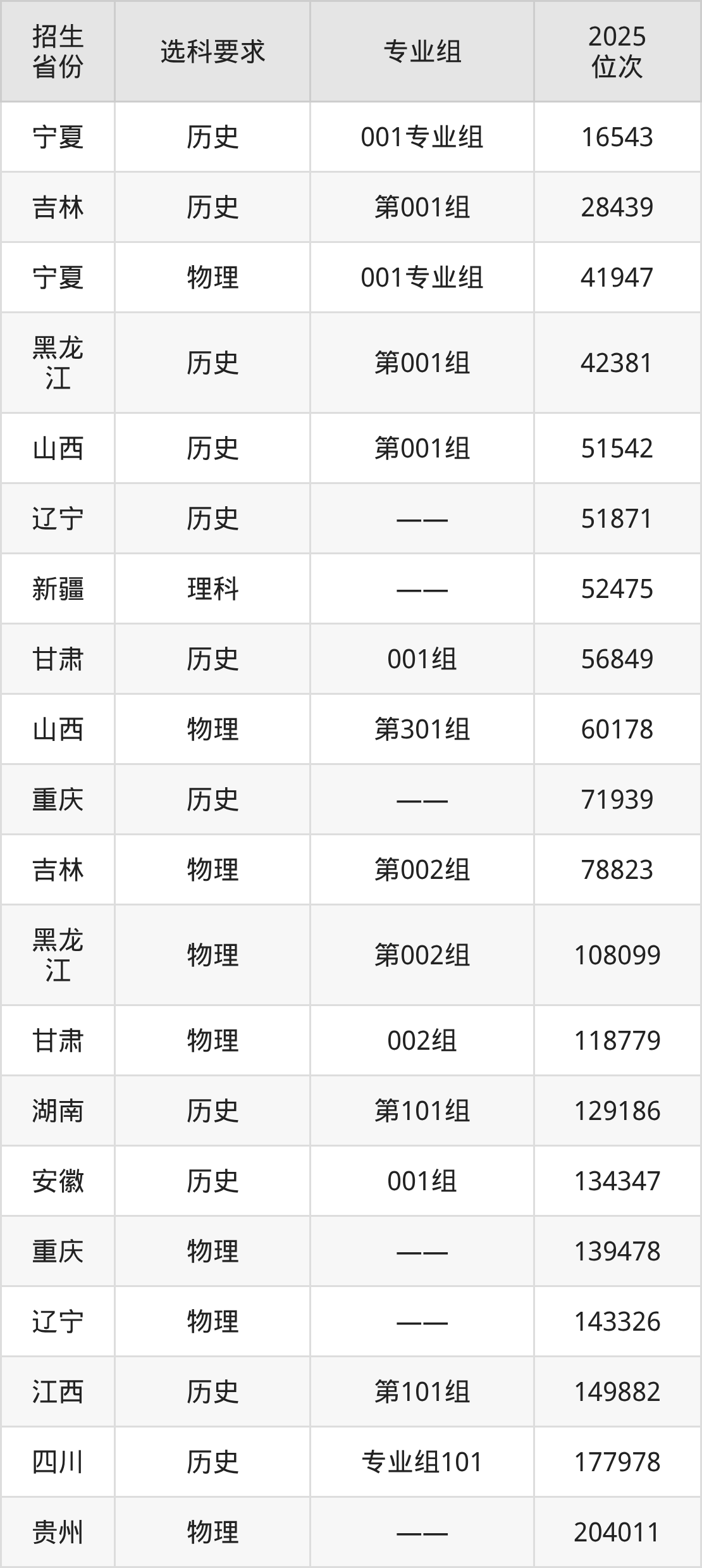 大连汽车职业技术学院2025年在全国各省的位次差异较大,最高位次是16543位(宁夏历史类)、最低位次是604850位(山东)。各省具体位次请看下图: