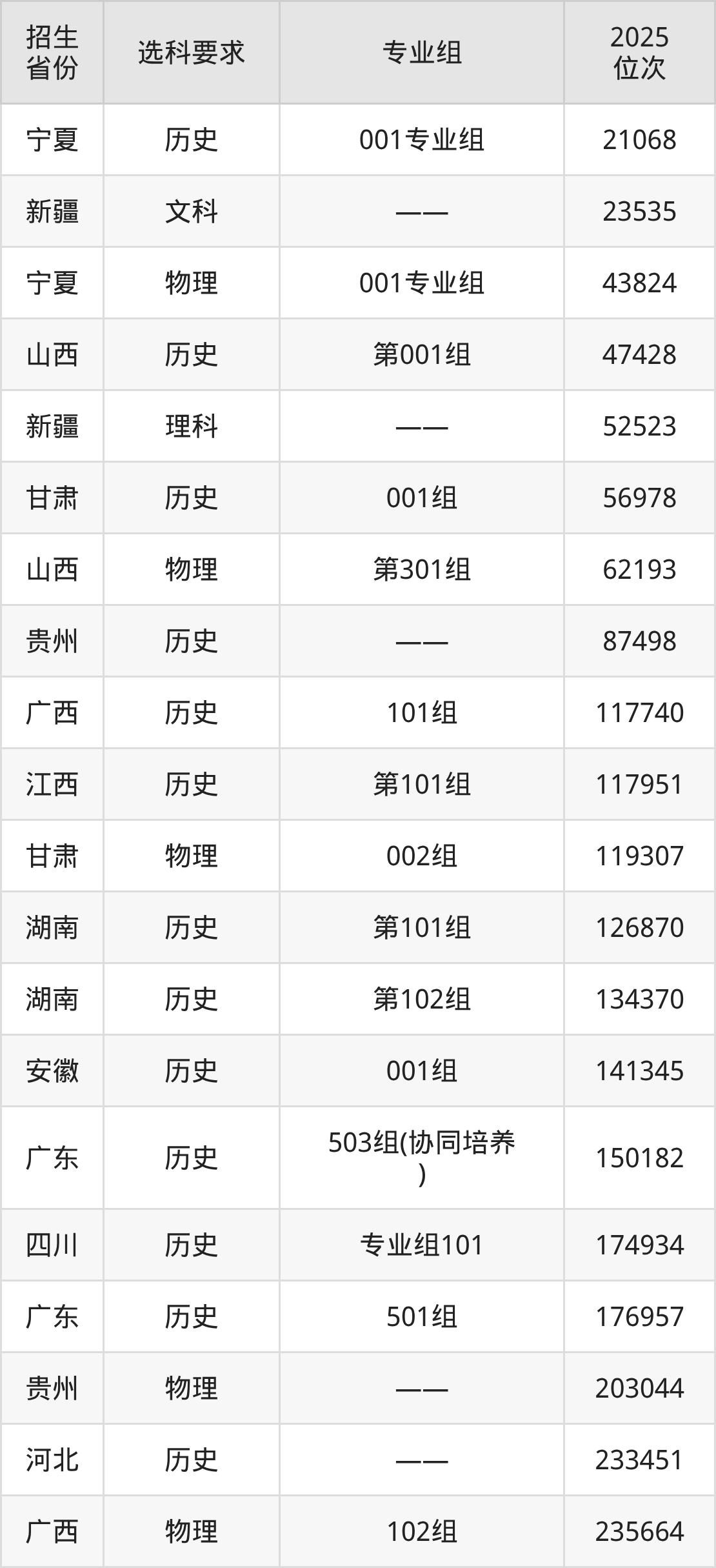 广州城建职业学院2025年在全国各省的位次差异较大,最高位次是21068位(宁夏历史类)、最低位次是437225位(广东物理类)。各省具体位次请看下图: