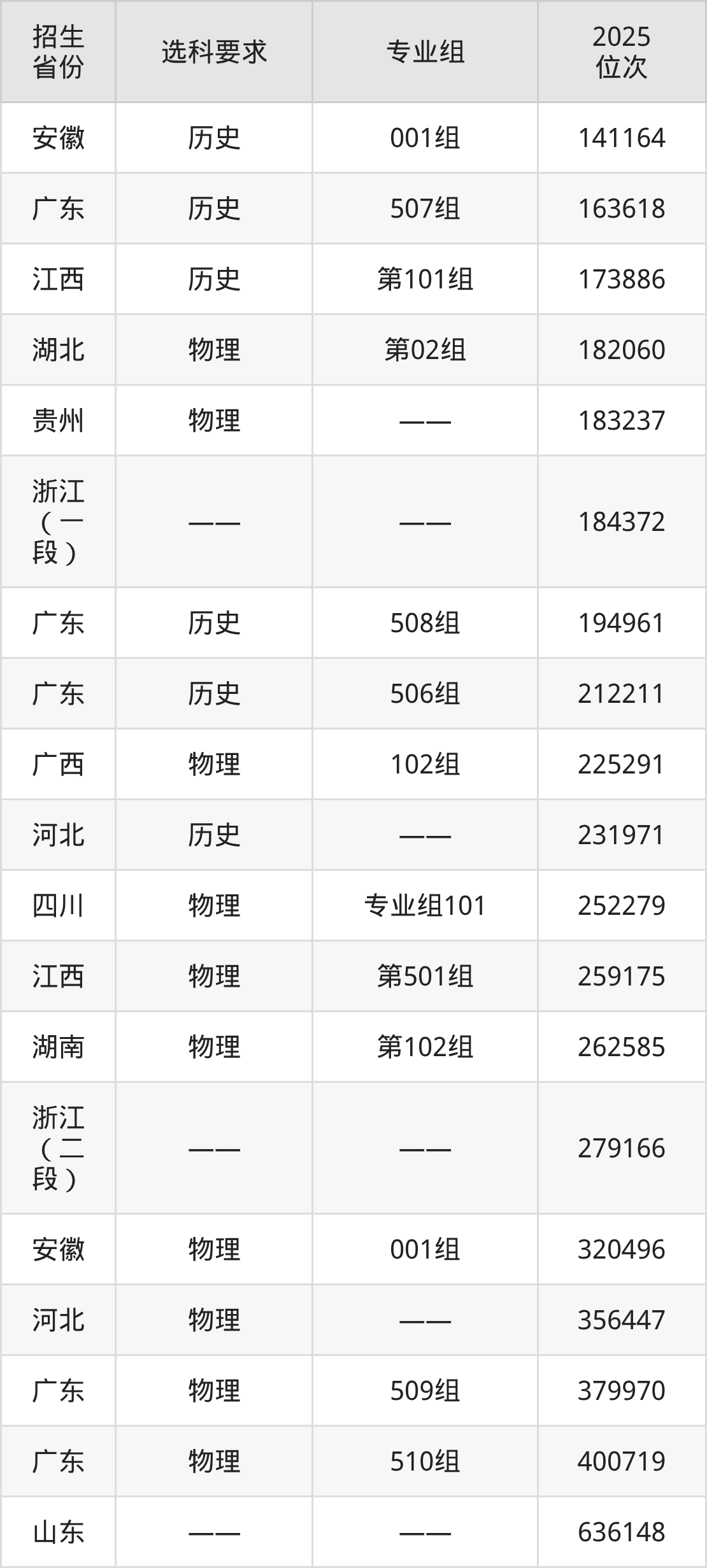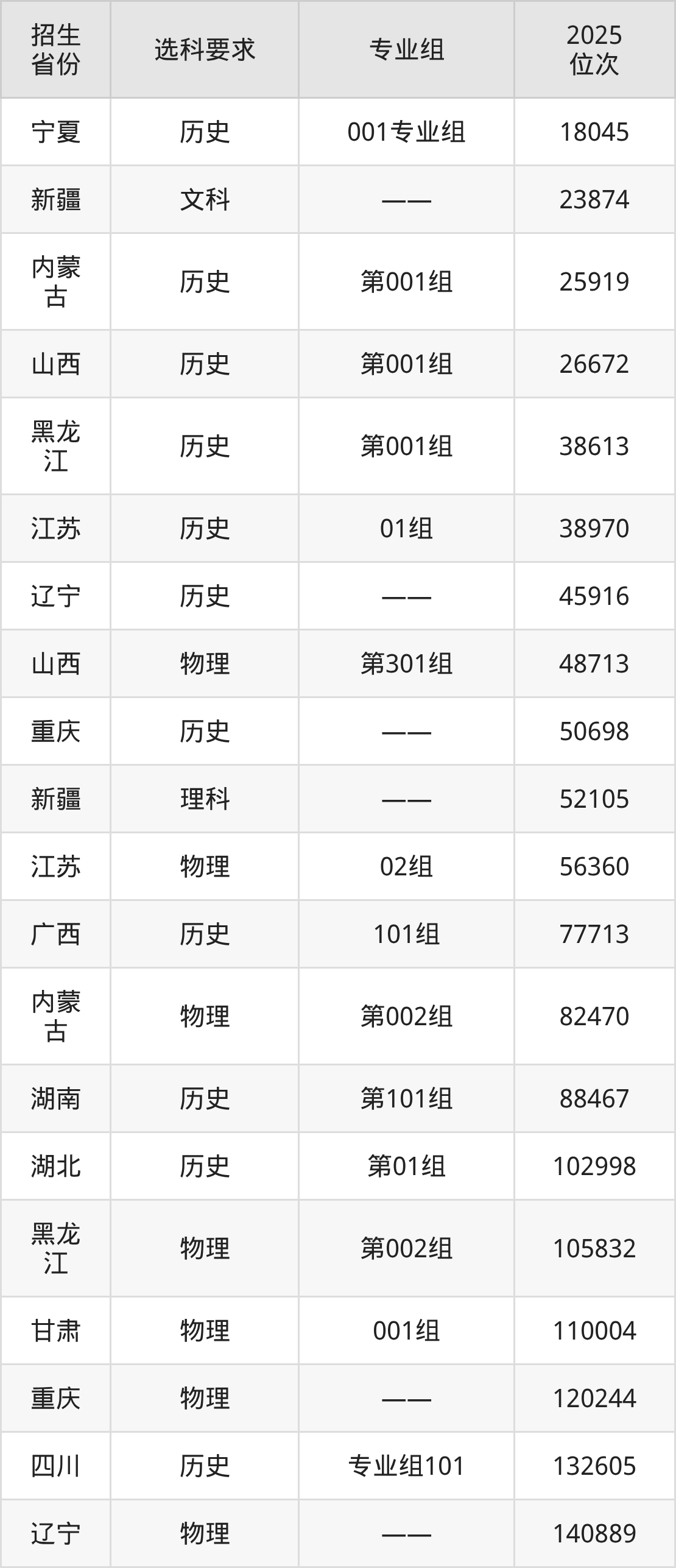 上海济光职业技术学院2025年在全国各省的位次差异较大,最高位次是18045位(宁夏历史类)、最低位次是636148位(山东)。各省具体位次请看下图: