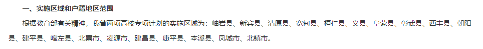 一、2026辽宁地方专项计划实施区域