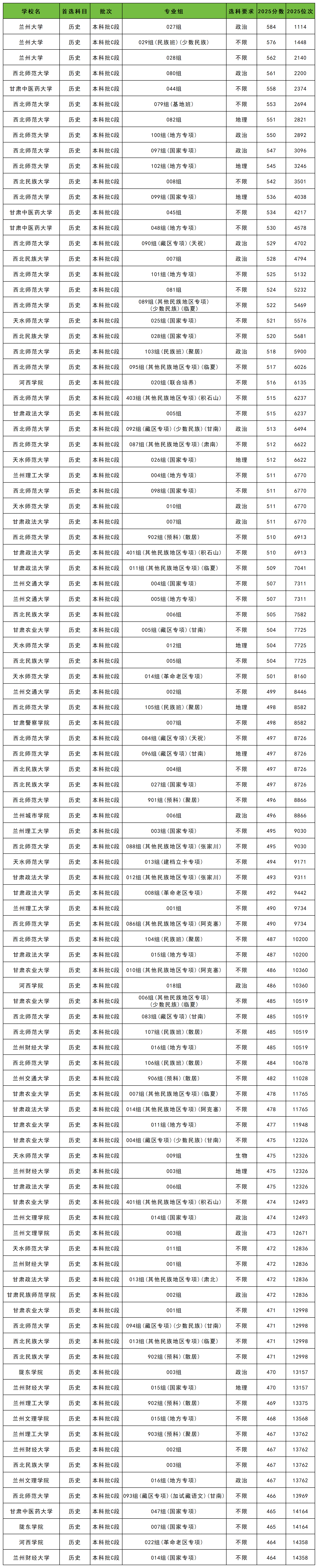 三、甘肃各大学录取分数线及位次