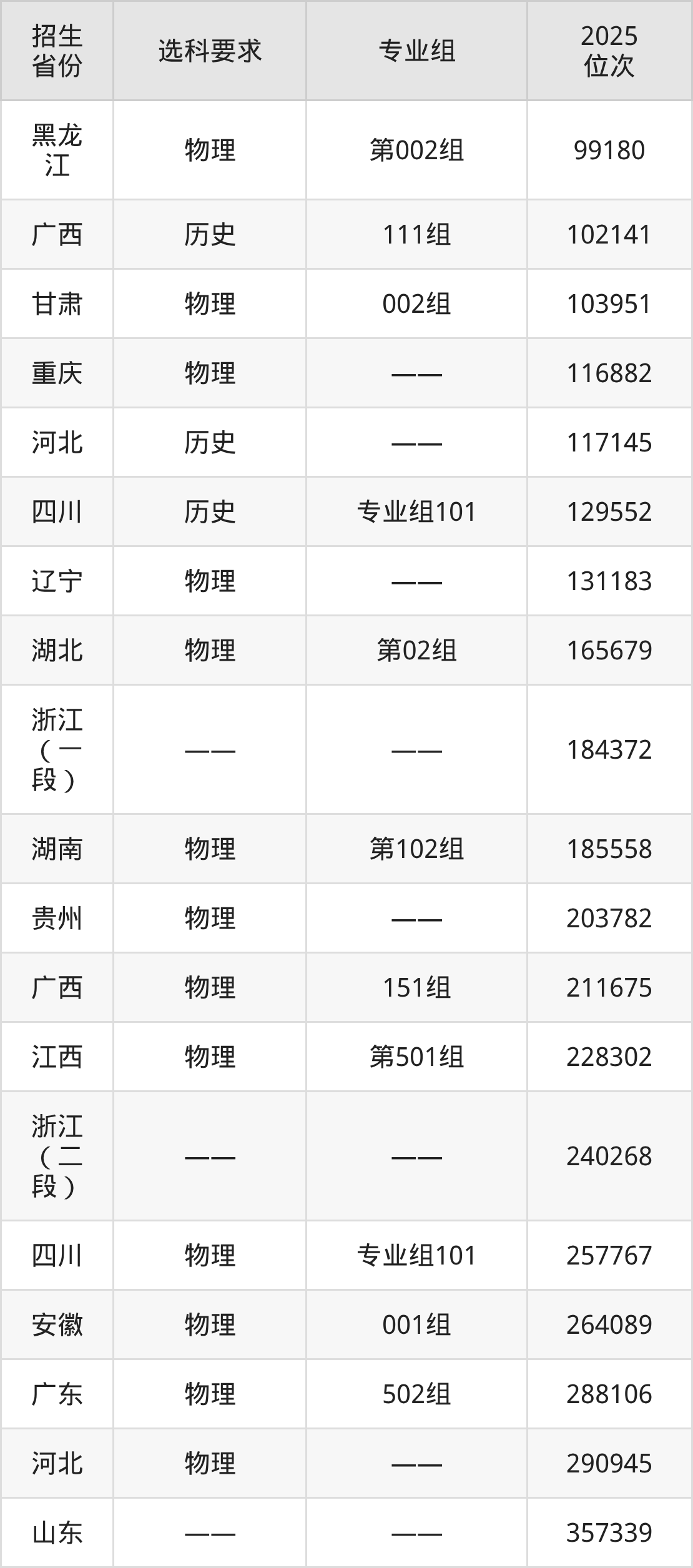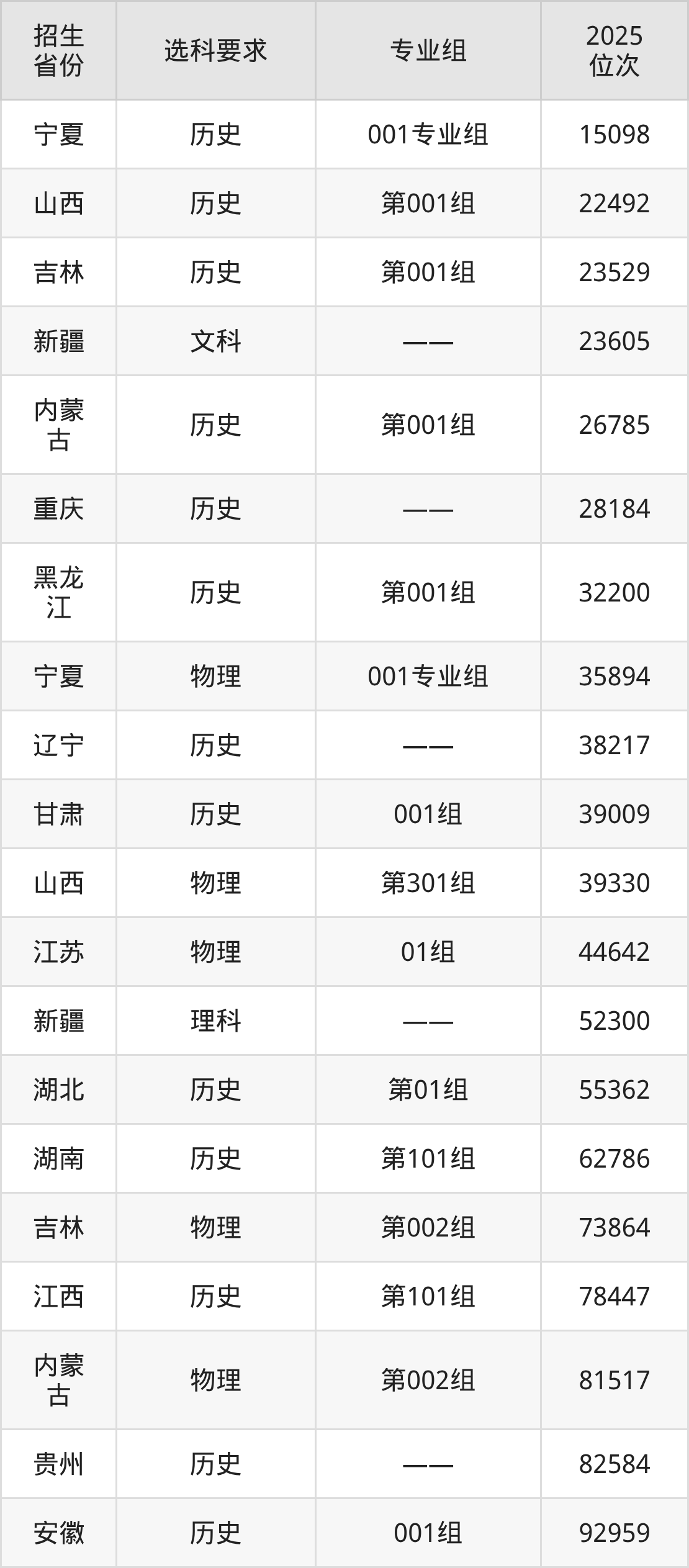 天津城市职业学院2025年在全国各省的位次差异较大,最高位次是15098位(宁夏历史类)、最低位次是357339位(山东)。各省具体位次请看下图:
