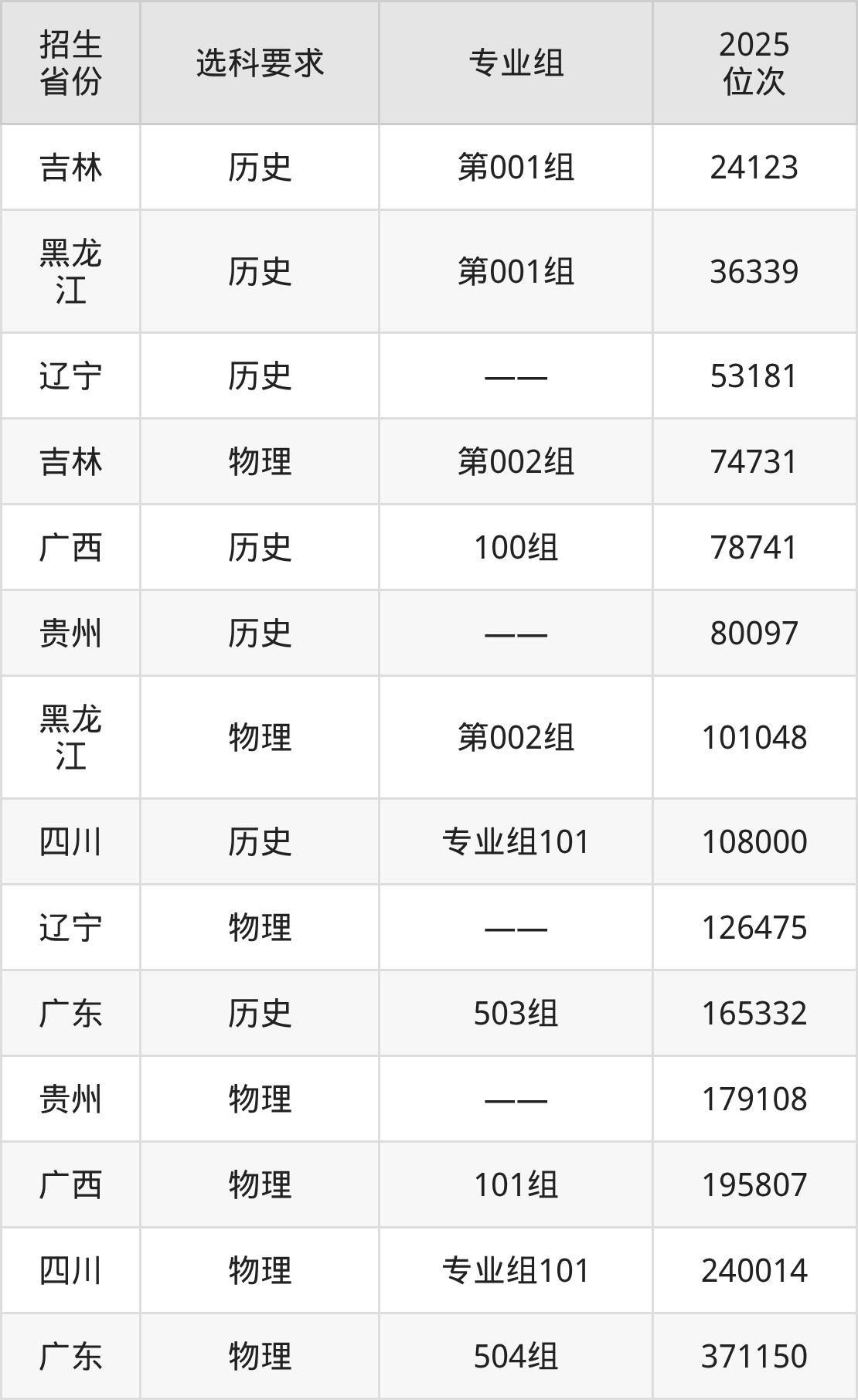 云南水利水电职业学院2025年在全国各省的位次差异较大,最高位次是24123位(吉林历史类)、最低位次是371150位(广东物理类)。各省具体位次请看下图: