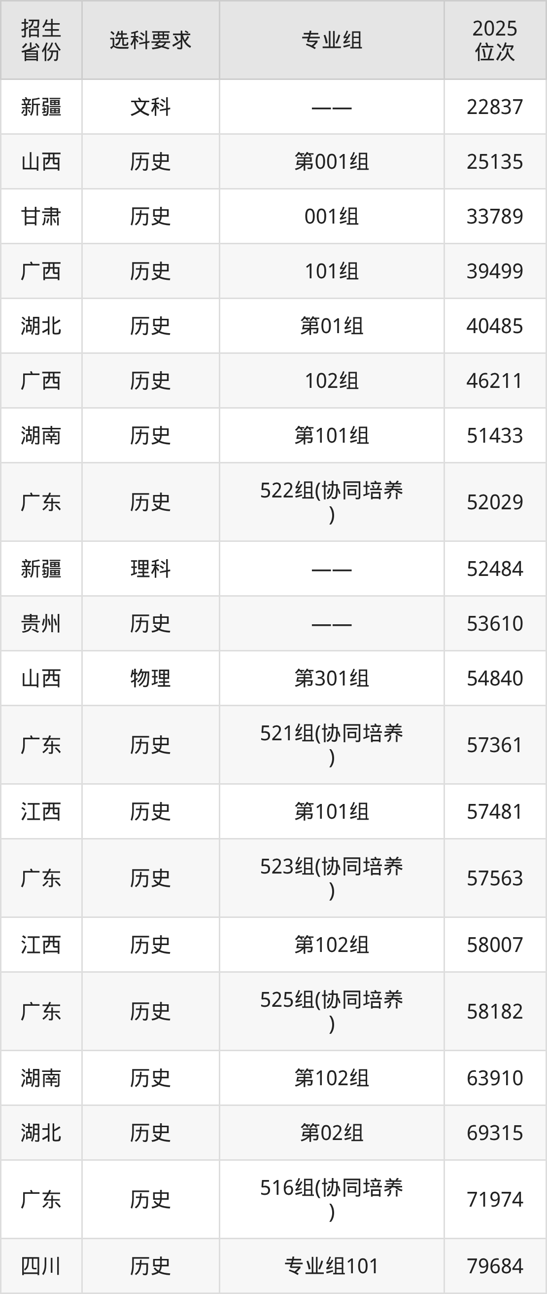 广东食品药品职业学院2025年在全国各省的位次差异较大,最高位次是22837位(新疆文科)、最低位次是358764位(广东物理类)。各省具体位次请看下图: