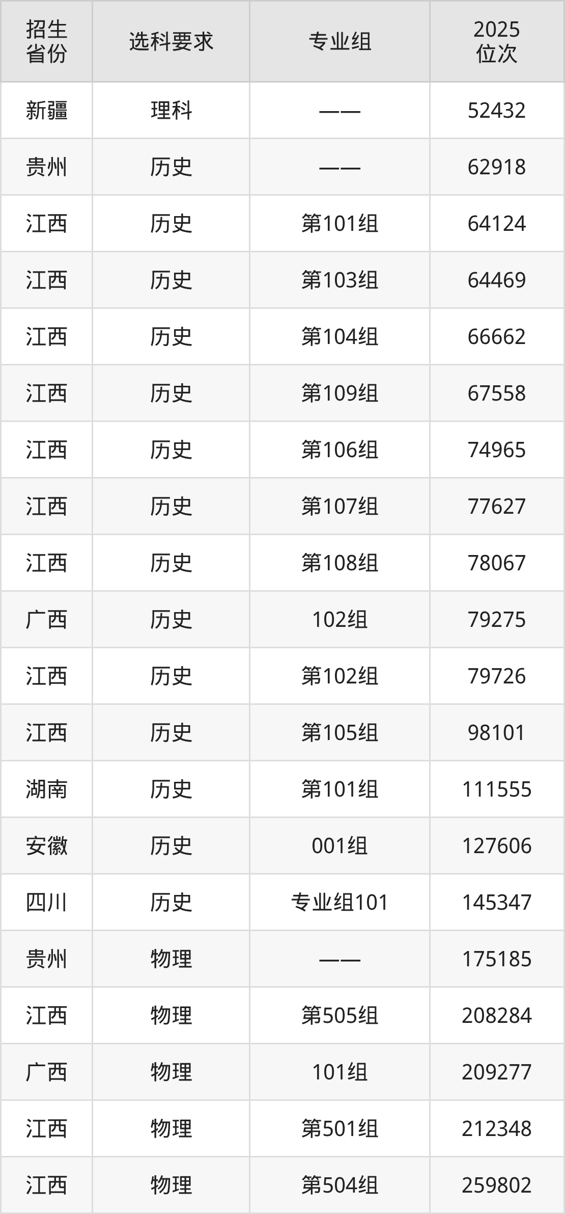 泉州幼儿师范高等专科学校2025年在全国各省的位次差异较大,最高位次是52432位(新疆理科)、最低位次是317035位(安徽物理类)。各省具体位次请看下图: