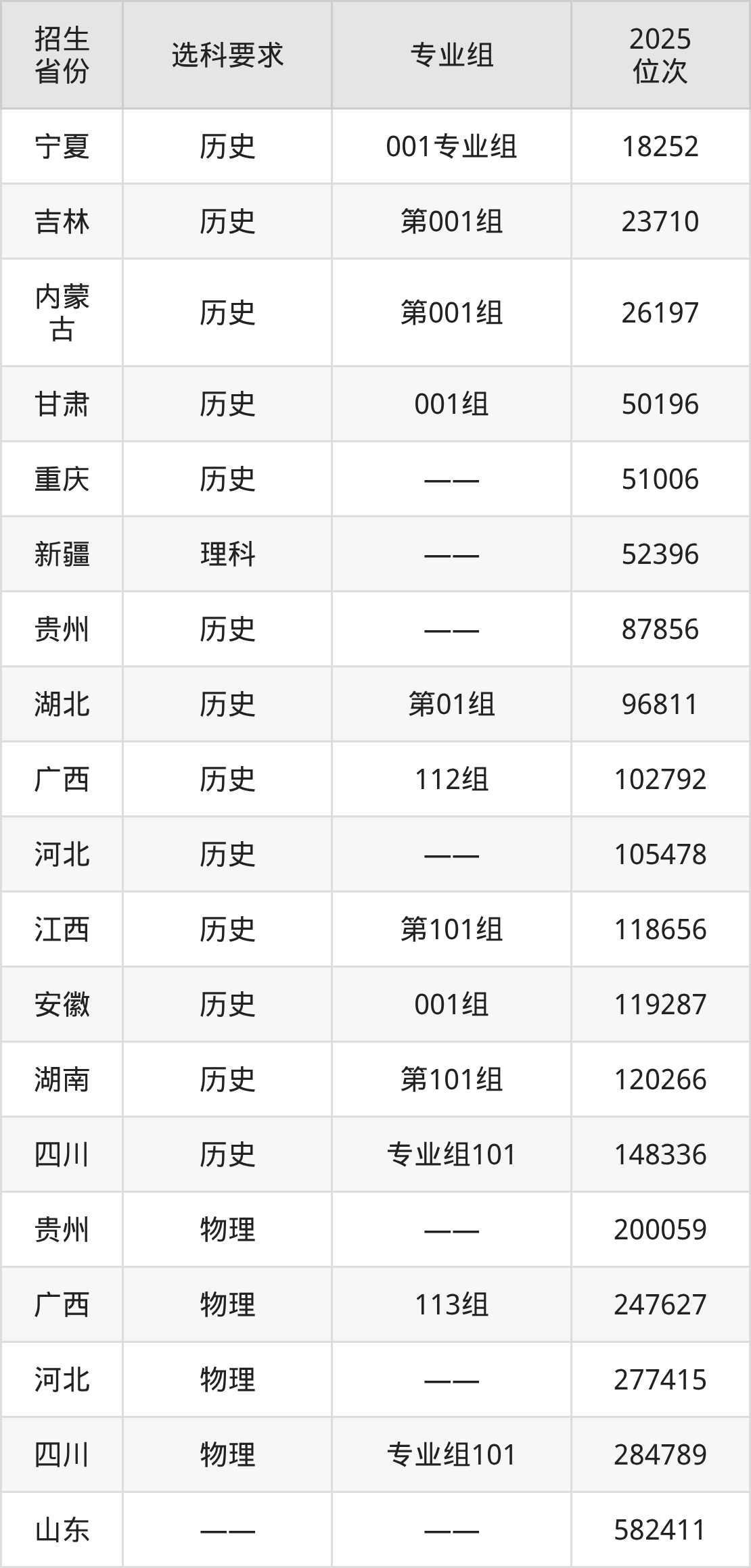 菏泽家政职业学院2025年在全国各省的位次差异较大,最高位次是18252位(宁夏历史类)、最低位次是582411位(山东)。各省具体位次请看下图: