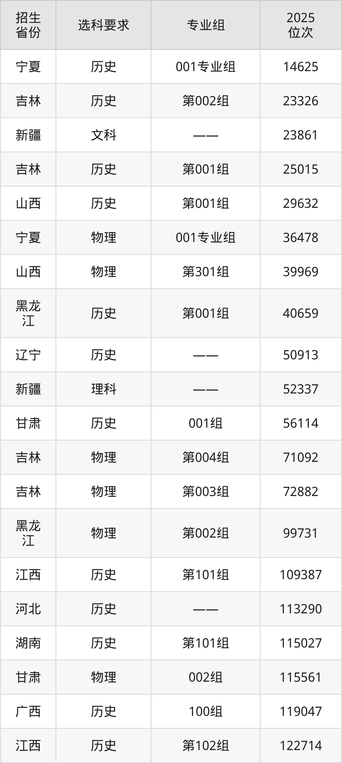 辽宁冶金职业技术学院2025年在全国各省的位次差异较大,最高位次是14625位(宁夏历史类)、最低位次是307456位(安徽物理类)。各省具体位次请看下图: