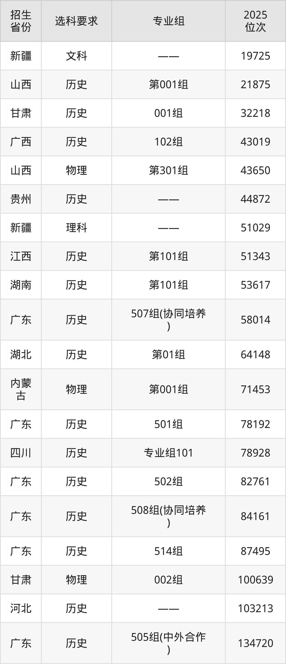 广州城市职业学院2025年在全国各省的位次差异较大,最高位次是19725位(新疆文科)、最低位次是362627位(广东物理类)。各省具体位次请看下图: