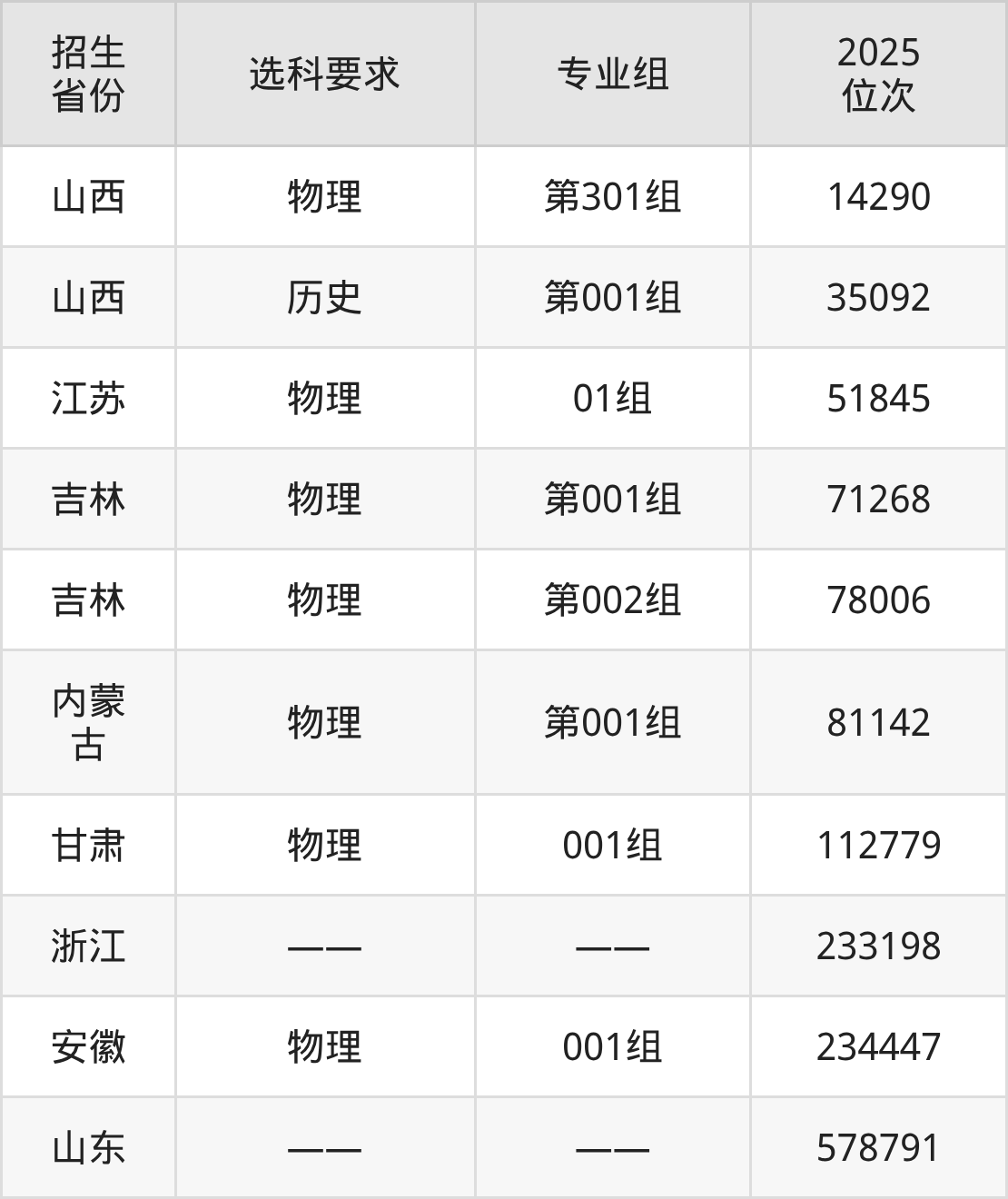 济南工程职业技术学院2025年在全国各省的位次差异较大,最高位次是14290位(山西物理类)、最低位次是578791位(山东)。各省具体位次请看下图: