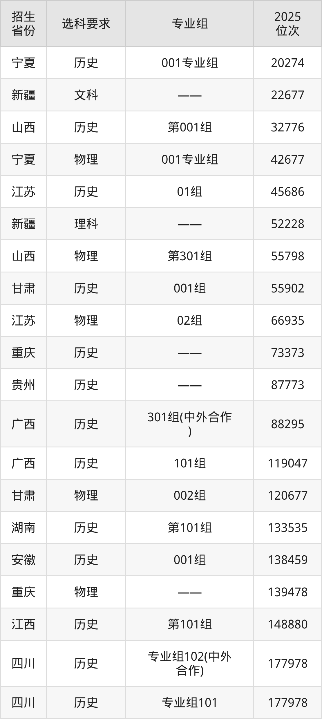 重庆艺术工程职业学院2025年在全国各省的位次差异较大,最高位次是20274位(宁夏历史类)、最低位次是667827位(山东)。各省具体位次请看下图:
