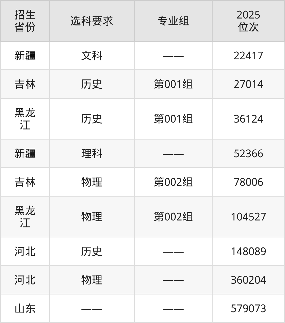 延边职业技术学院2025年在全国各省的位次差异较大,最高位次是22417位(新疆文科)、最低位次是579073位(山东)。各省具体位次请看下图: