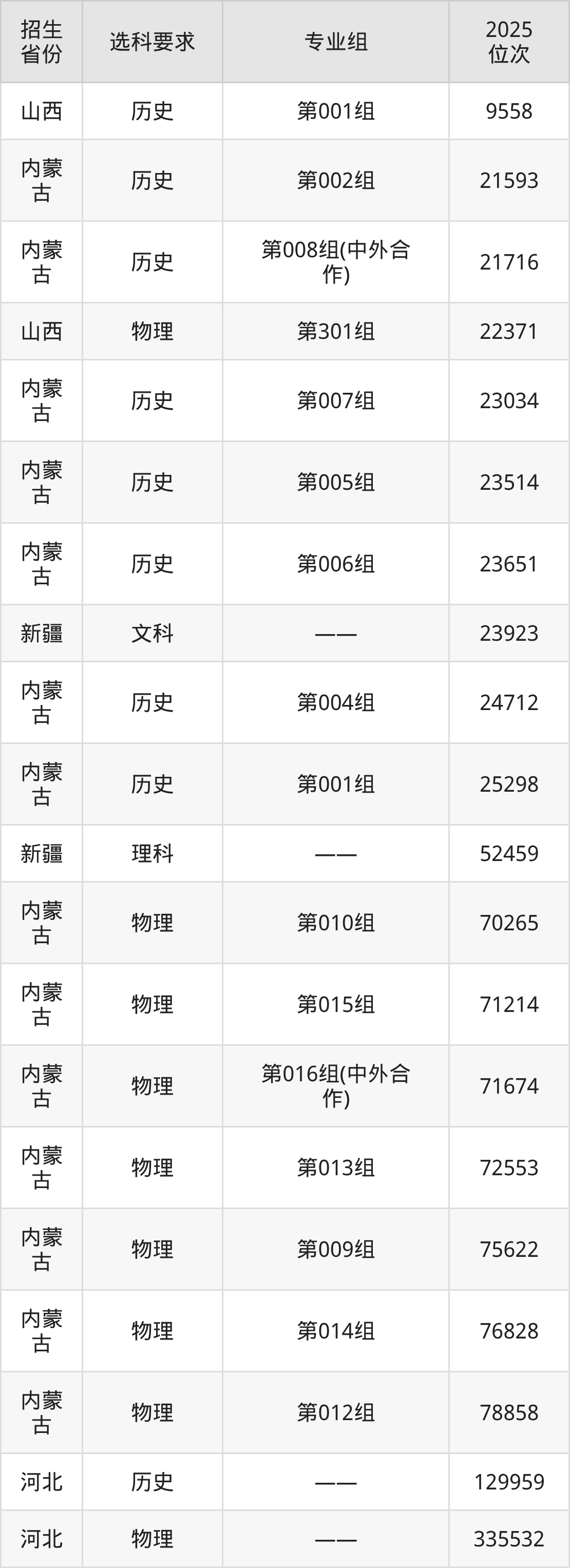 内蒙古商贸职业学院2025年在全国各省的位次差异较大,最高位次是9558位(山西历史类)、最低位次是335532位(河北物理类)。各省具体位次请看下图: