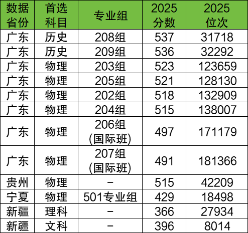 以核心招生省份广东为例,2025年该校本科批历史类录取分数区间大致在536-537分,物理类录取分数区间大致在491-523分,结合近年走势预估,2026年在广东地区,本科批历史类录取分数线大概率在530-540分区间,物理类录取分数线大概率在510-520分区间。