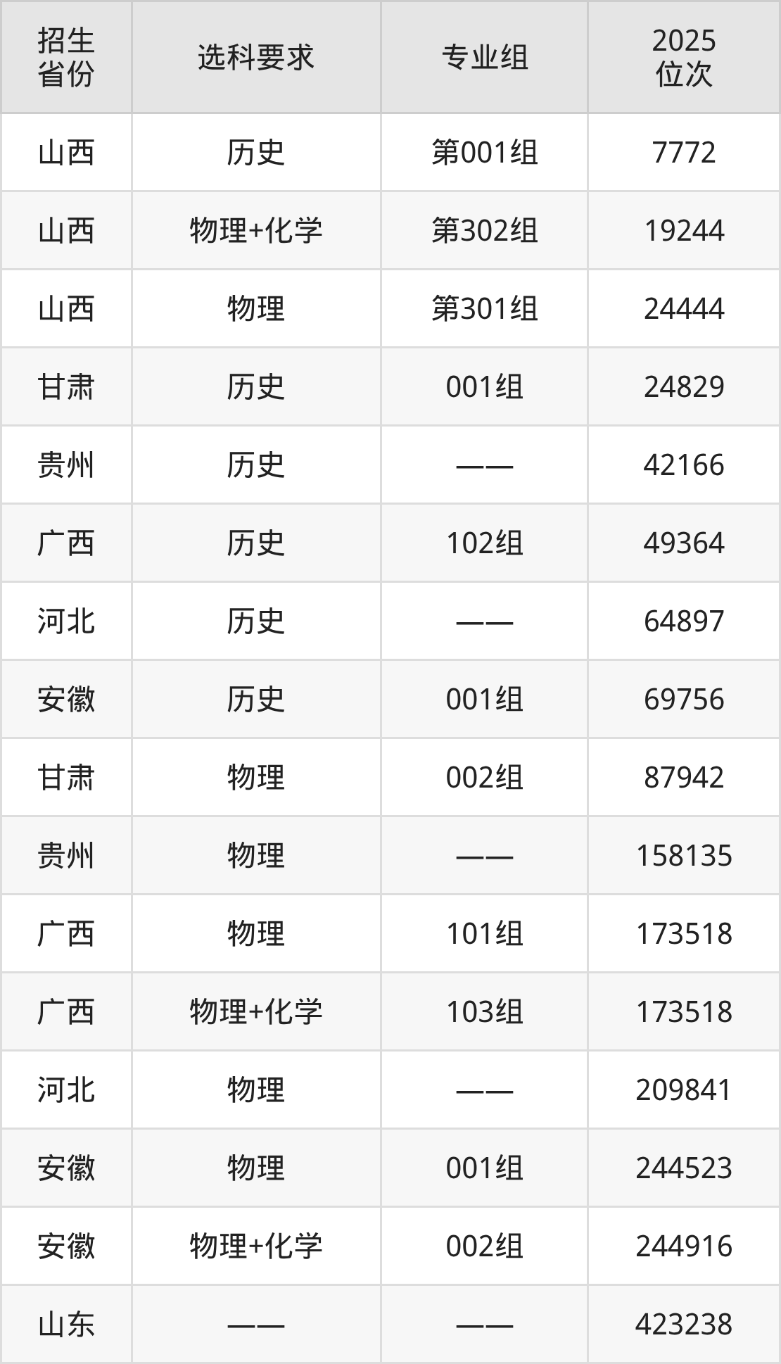 菏泽医学专科学校2025年在全国各省的位次差异较大,最高位次是7772位(山西历史类)、最低位次是423238位(山东)。各省具体位次请看下图: