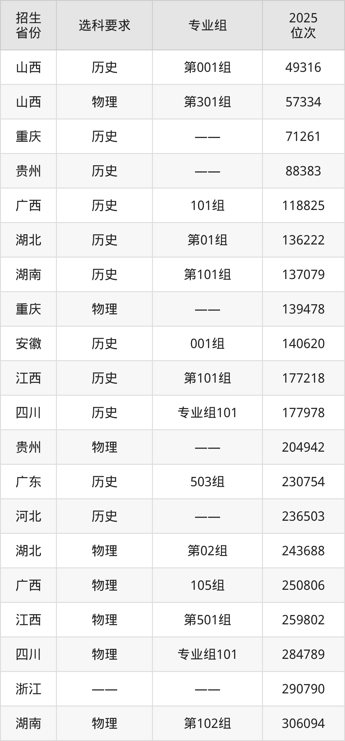 贵州城市职业学院2025年在全国各省的位次差异较大,最高位次是49316位(山西历史类)、最低位次是678077位(山东)。各省具体位次请看下图: