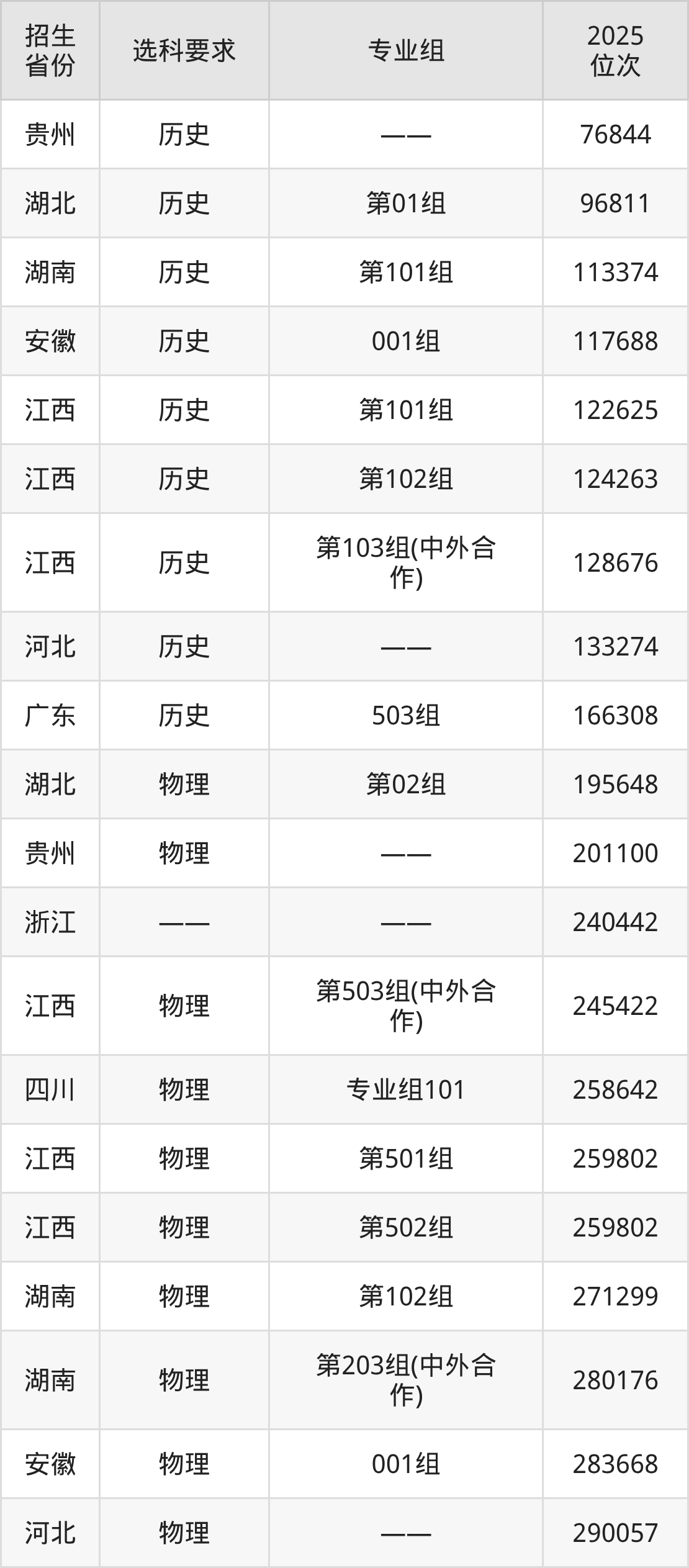 上饶职业技术学院2025年在全国各省的位次差异较大,最高位次是76844位(贵州历史类)、最低位次是534085位(山东)。各省具体位次请看下图: