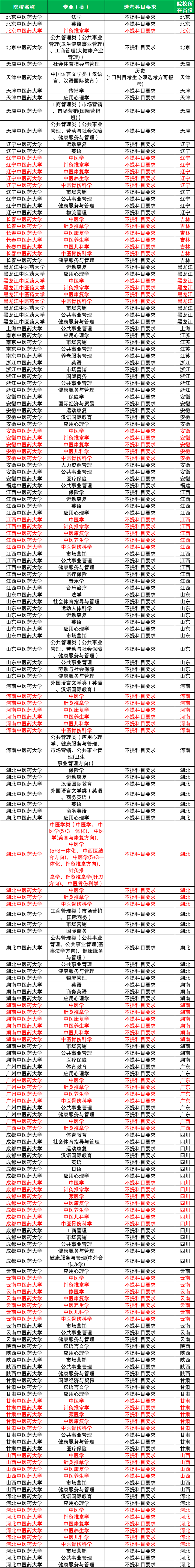 注:文科生可以报考“不限选科”的中医药大学。本文参考山东省发布的《2024通用版普通高校拟在山东招生专业(类)选考科目要求(本科)(适用于2025年和2026年参加高考的考生)》文件,仅统计不限选科的中医药大学名单。