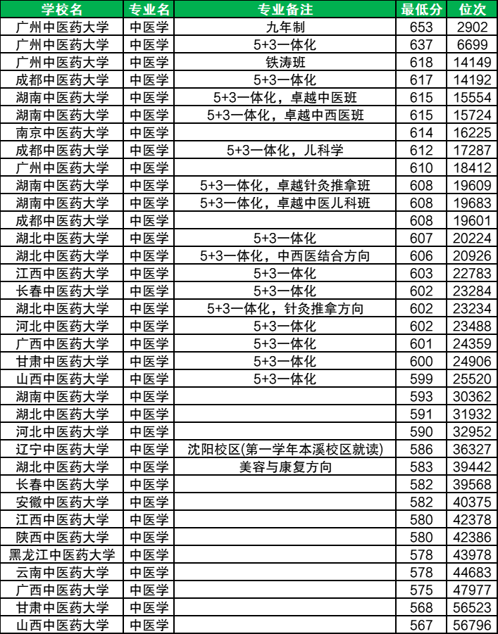 总的来看,各校中医学专业的分数比2024年上涨了约10分-30分不等,位次上升约1000名到3万名左右不等,整体呈暴涨趋势。